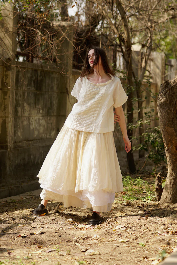 We are so excited to release our latest tutu design. Amélie is a gorgeous three layered tutu slip made with cotton twill, cotton organdy and cotton gauze raw hem skirt. Designed to be worn as a skirt with a built in cami top, this piece can be layered with just about anything in our range.