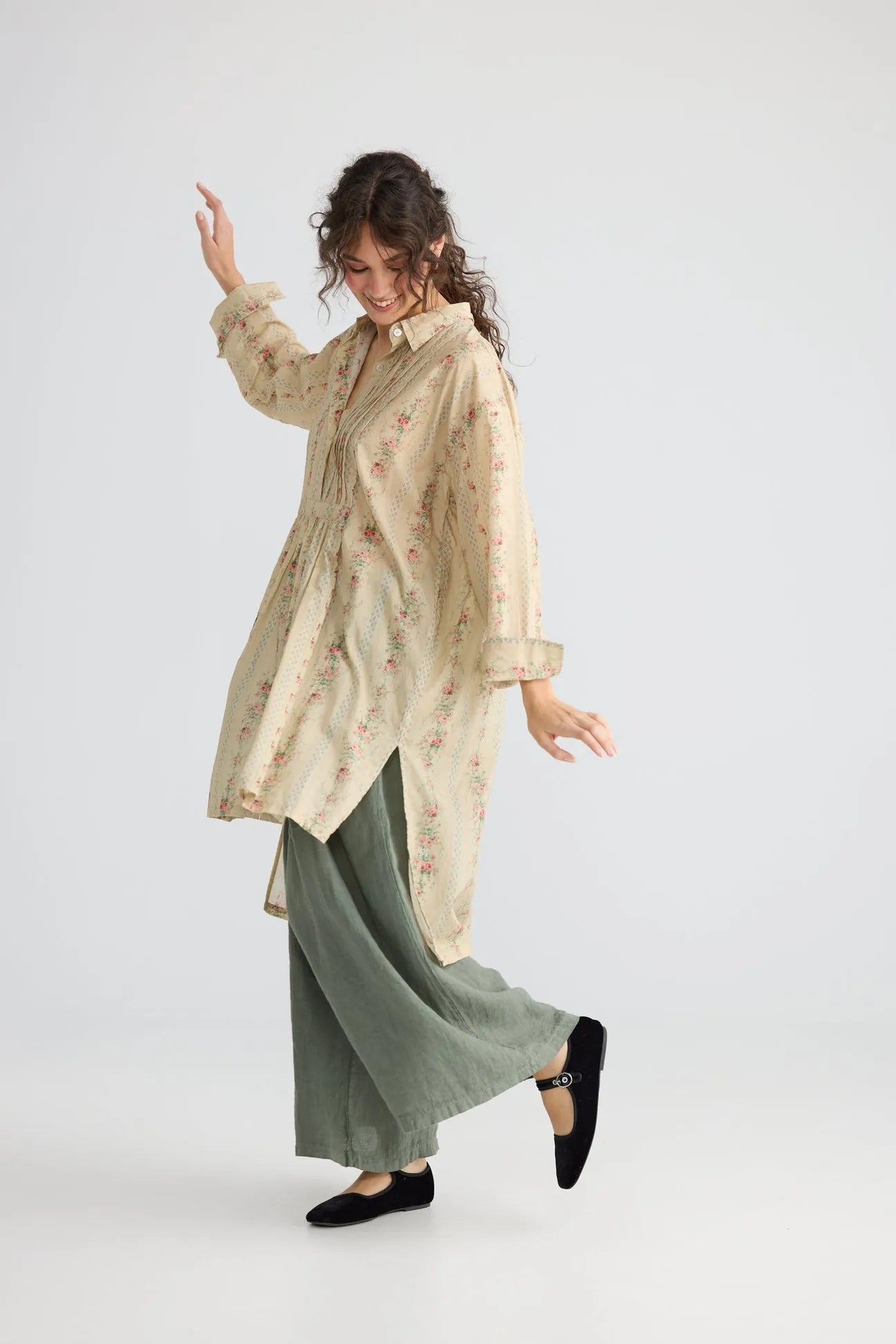 Annabella long shirt. French Floral miss roses sister violet