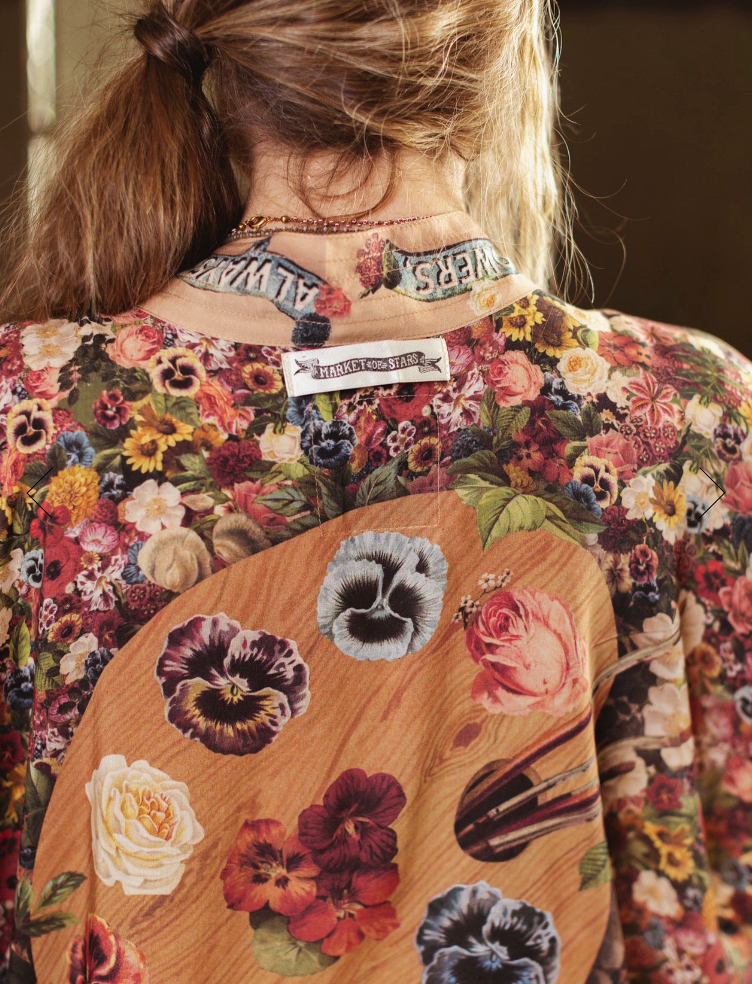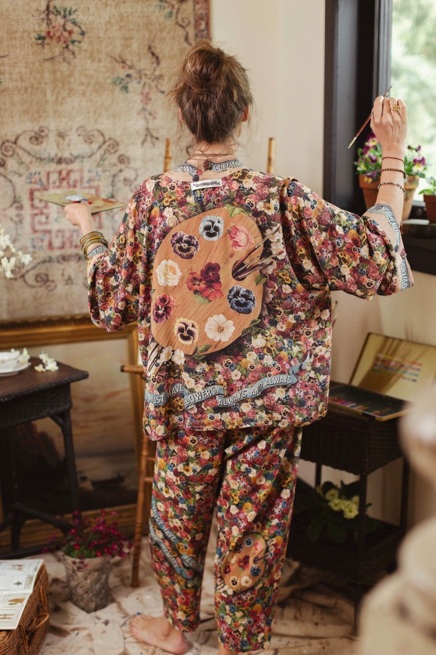 When we unearthed an antique seed catalogue with the delightful image of an artist’s paint palette dotted with flowers (instead of paint), we were instantly inspired to create this piece! One of the most intricate prints we’ve ever designed, it was made by carefully remixing the original artwork, and layering over 50 different flowers together to create the background. Every single beautiful little flower was taken from vintage 1800’s seed catalogues. The banner on the trim is a lithograph from the same era, and features a quote from the great artist, Claude Monet — who once said he owed becoming a painter to the beauty of flowers. The resulting print is whimsical, artsy, and super cool — with an antique feel that we adore.