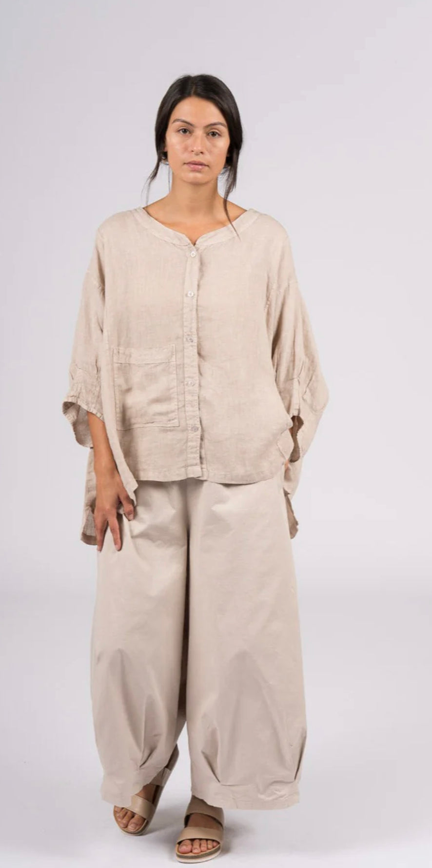 Enjoy elevated style, in total comfort with our NEW Caroline wide-leg pant. Crafted in Italy from the finest cotton, this relaxed fit is easy to wear and easy to style. Featuring a unique v-pleat at the hem, they drape beautifully. You'll love the versatility to dress them up or down, pair with a tee for understated chic, or a shirt to go out. These are a wardrobe staple you'll love for seasons to come.