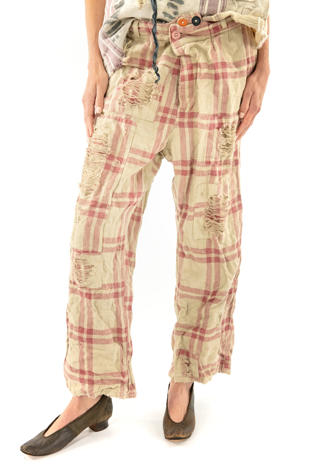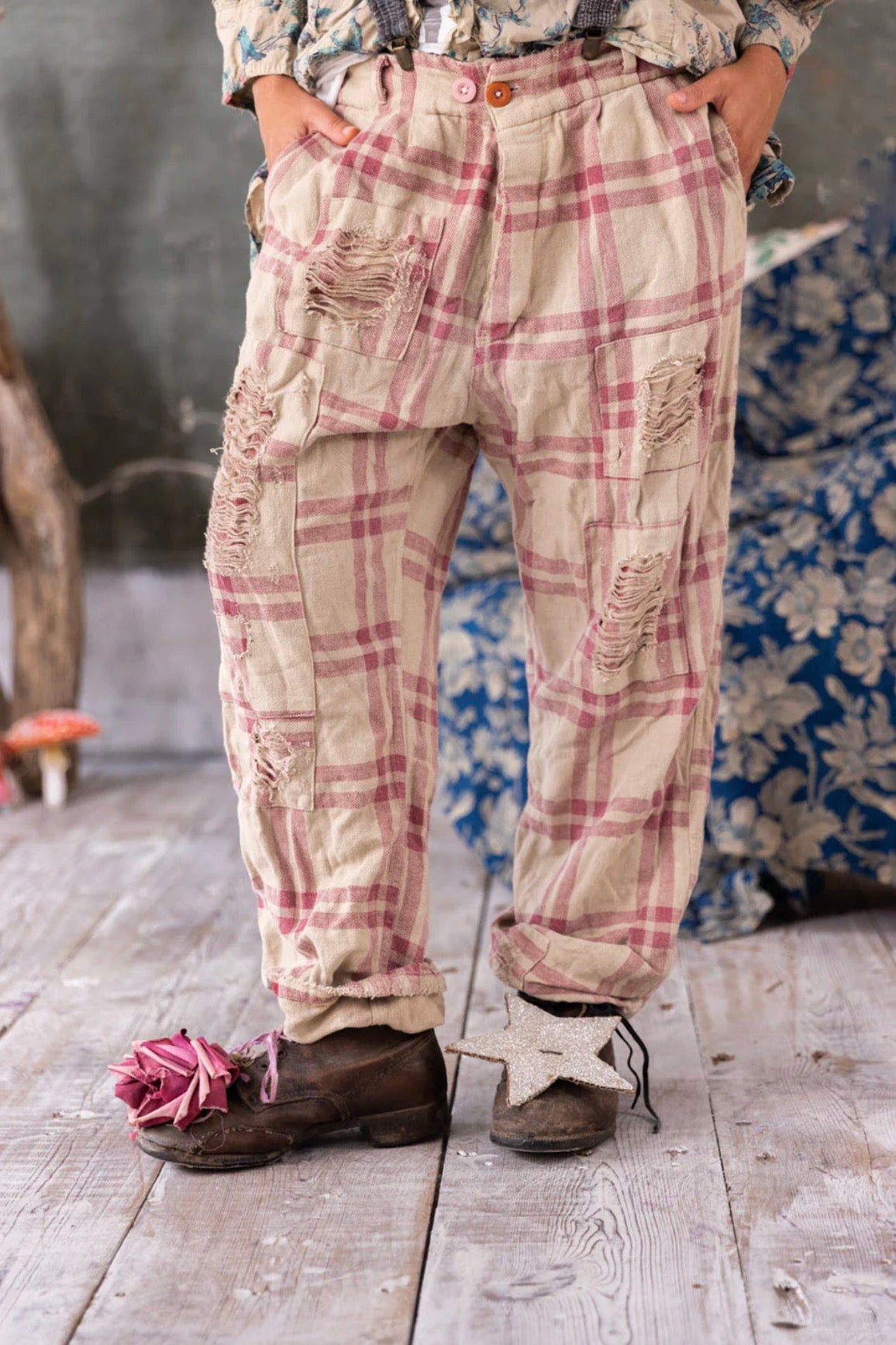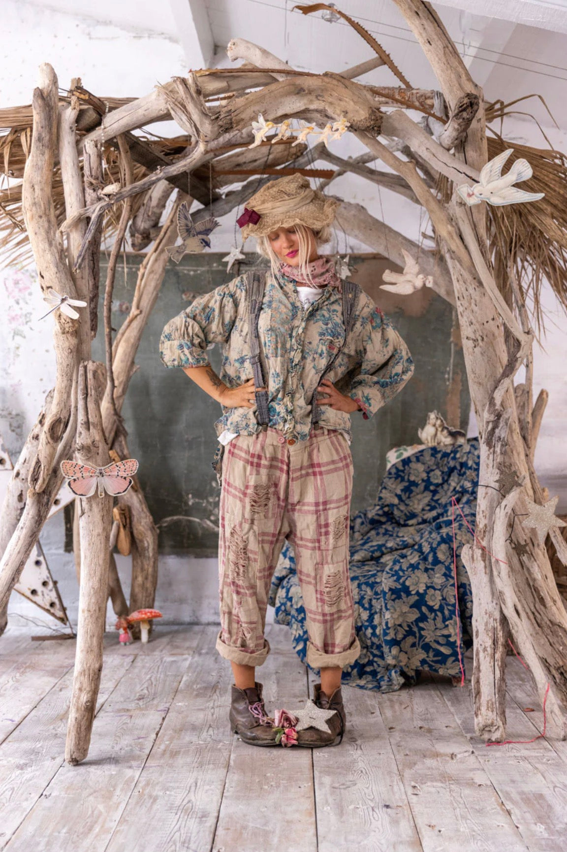 The Magnolia Pearl Charmie Trousers are a poetic blend of tailored sophistication and artful distressing, crafted from woven herringbone cotton for timeless comfort and style. Inspired by the whimsical phrase, "I am a cloud - in trousers," these trousers float effortlessly between form and function.