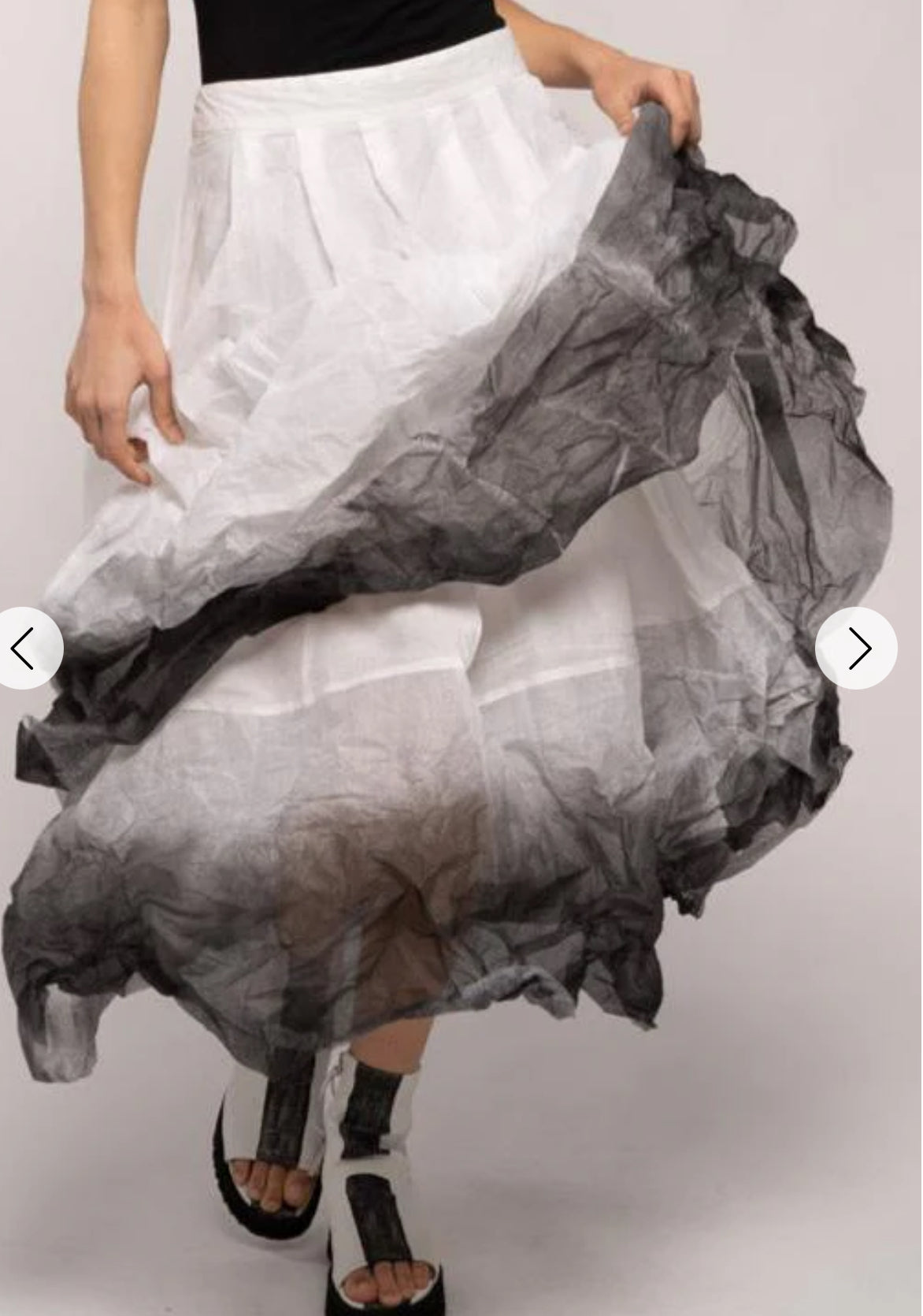 Experience the ultimate drama with the Monarch Skirt. Its fitted waist cascades into layers of hand-painted organdy and voile, complete with a raw hem. Shape and create texture with your own hands as you wear this statement piece, and pair it with the Monarch Top for a sophisticated summer look. Available in Black, White, Navy and Chilli.