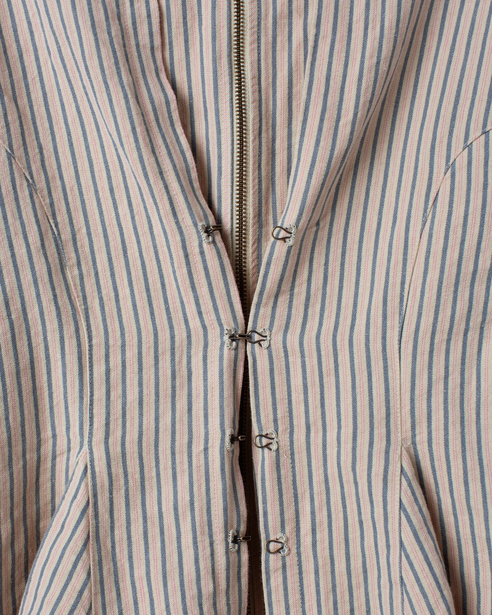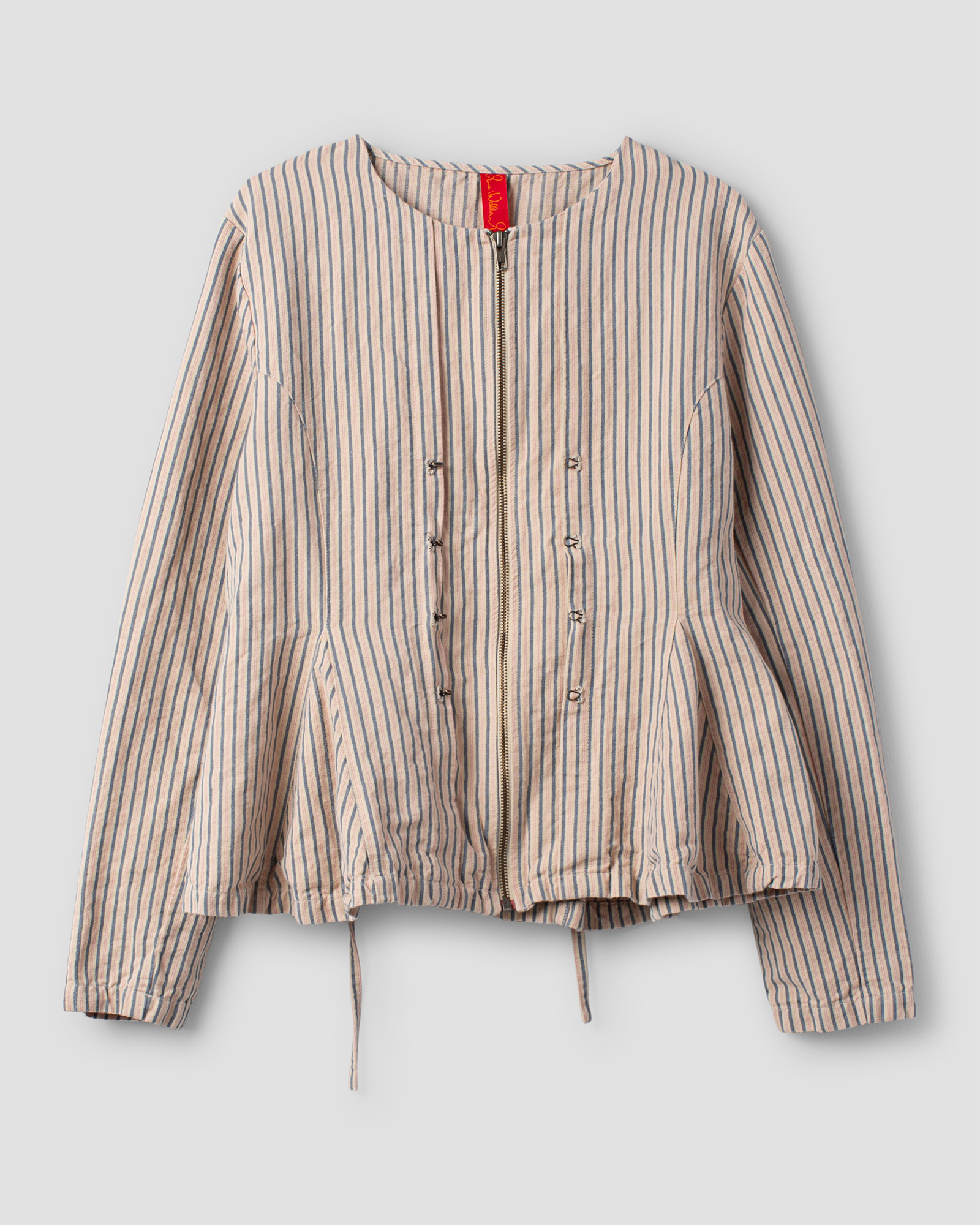Striped twill jacket with zipper and hooks and eyes front. Slightly fitted model with gores from the waist for a lovely silhouette and lacing at the back.