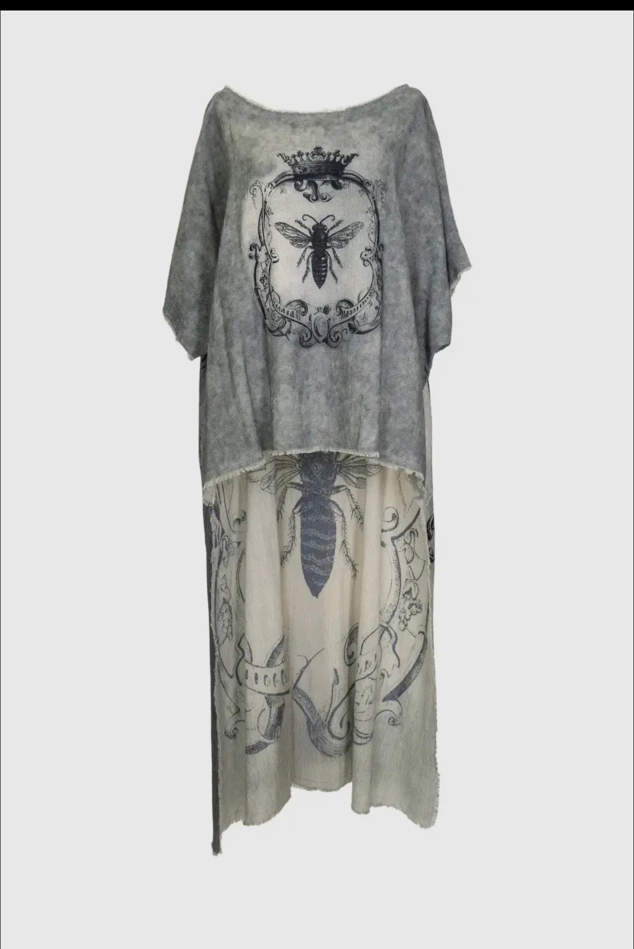 Made from soft breathable 100% cotton this queen bee hi low features a flattering hemline that crates movement and a relaxed silhouette. The bold queen bee print on the front brings a touch of personality and a playful authority dress it up with layered Jewelley or dress it down with jeans