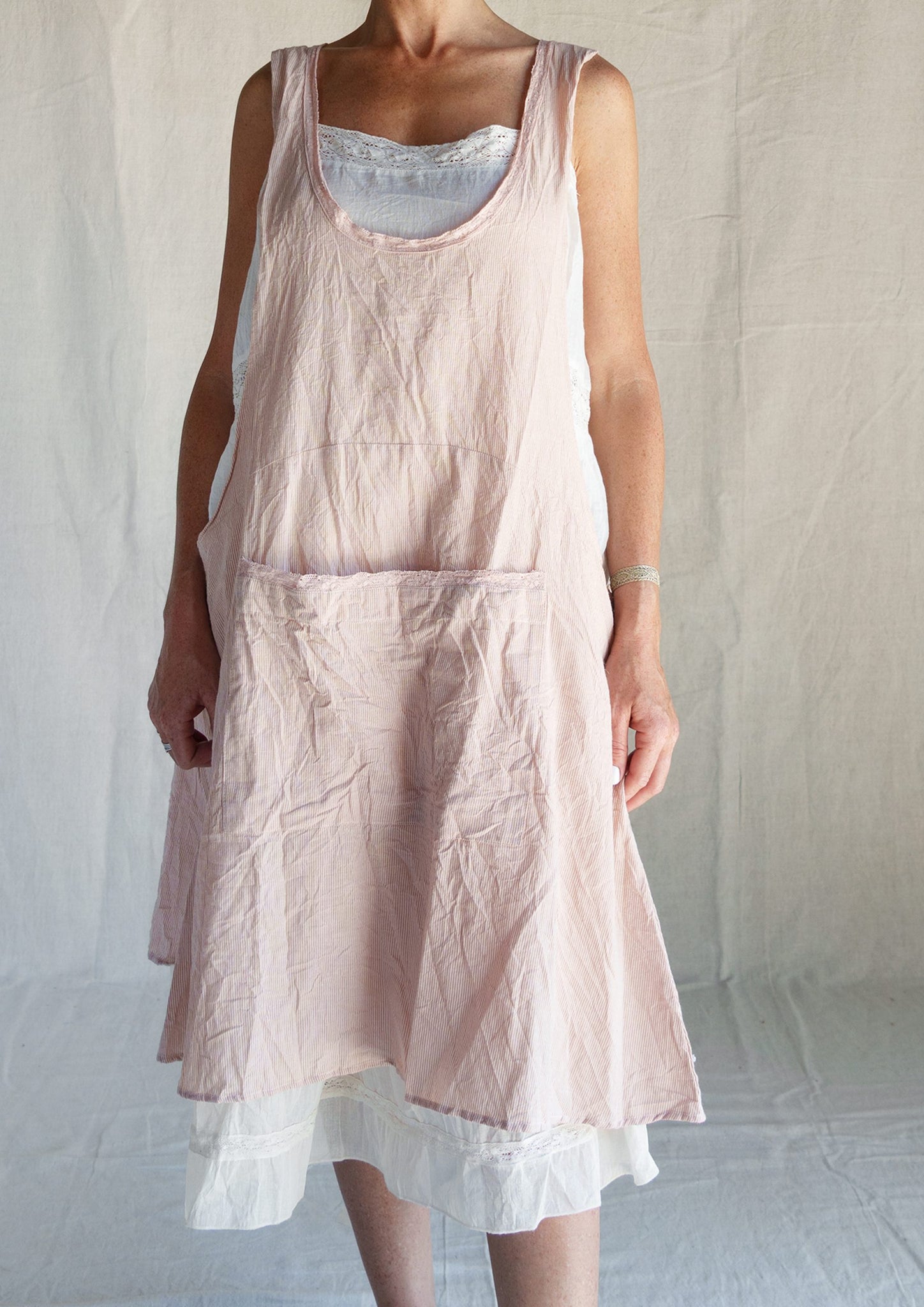 This apron is the perfect piece for those who love layering. Made from finely striped linen, it combines handcrafted charm with comfort.