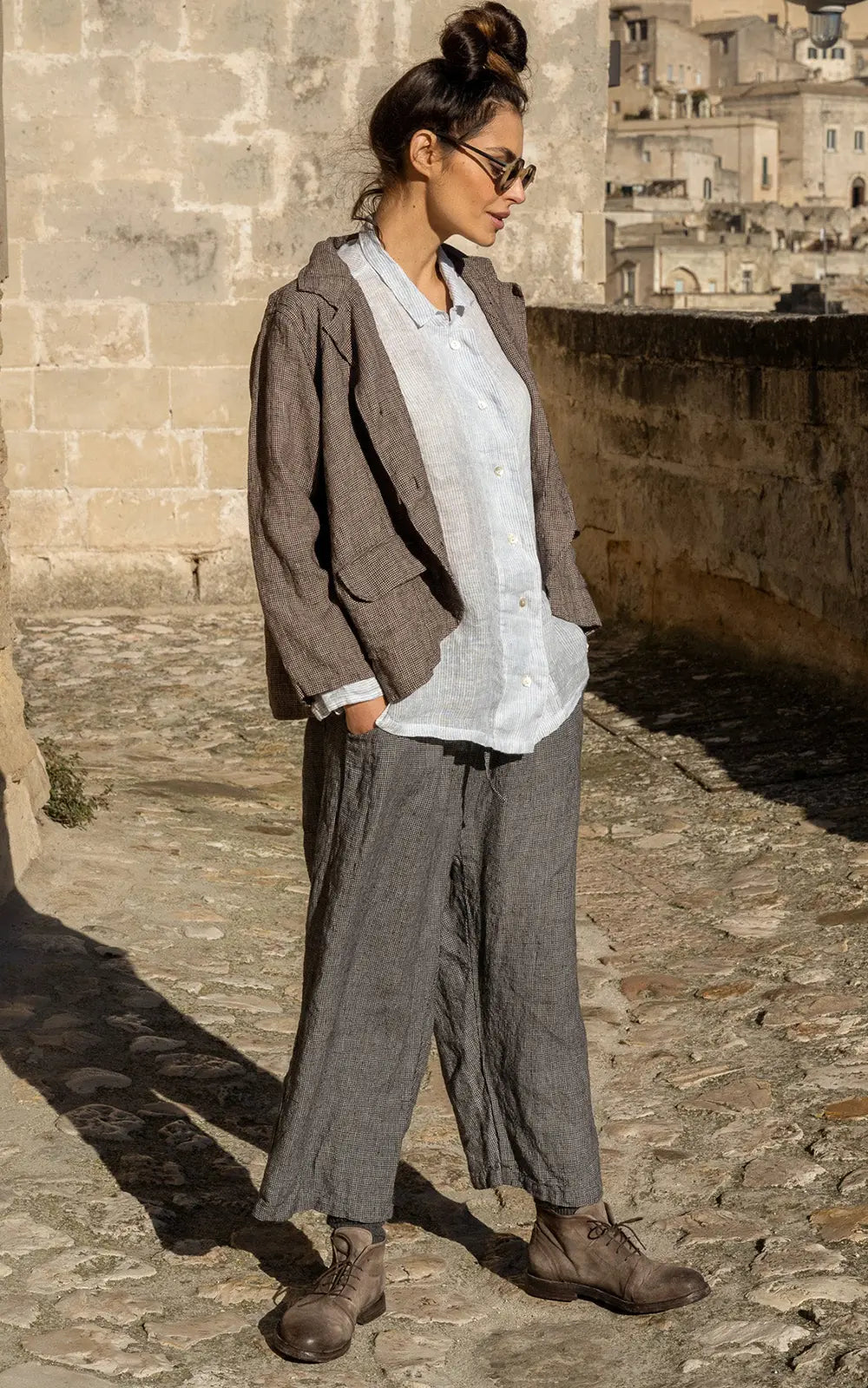 The Darcy Pants are made from a medium weight linen. Featuring side pockets, back pockets, elasticated waistband and a wide fit leg. MegbyDesign’s range is without season, time or age. Made with integrity, all of the pieces are designed to intertwine and build upon throughout the seasons and years. Each garment is simple, elegant and intended as a canvas for the wearer to imprint her own stamp of expression. *Notes: This garment may have some slubbing, this is part of the character of the fibre. General fit Medium 12-14, Large 14-16, Extra Large 18-22.