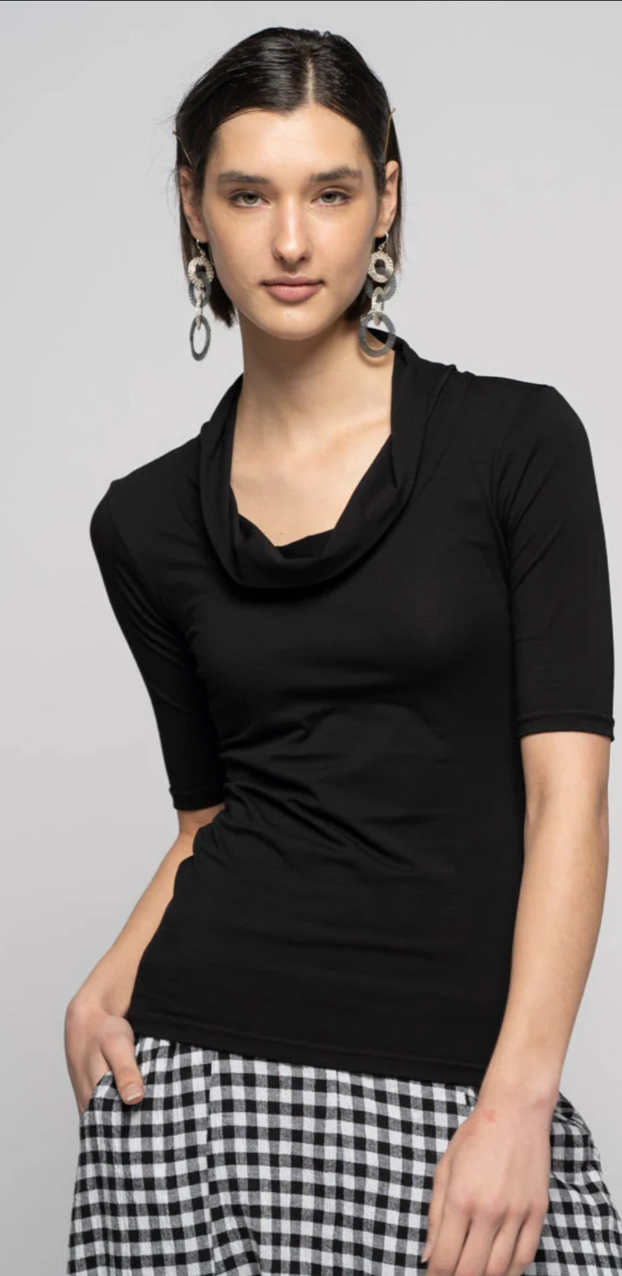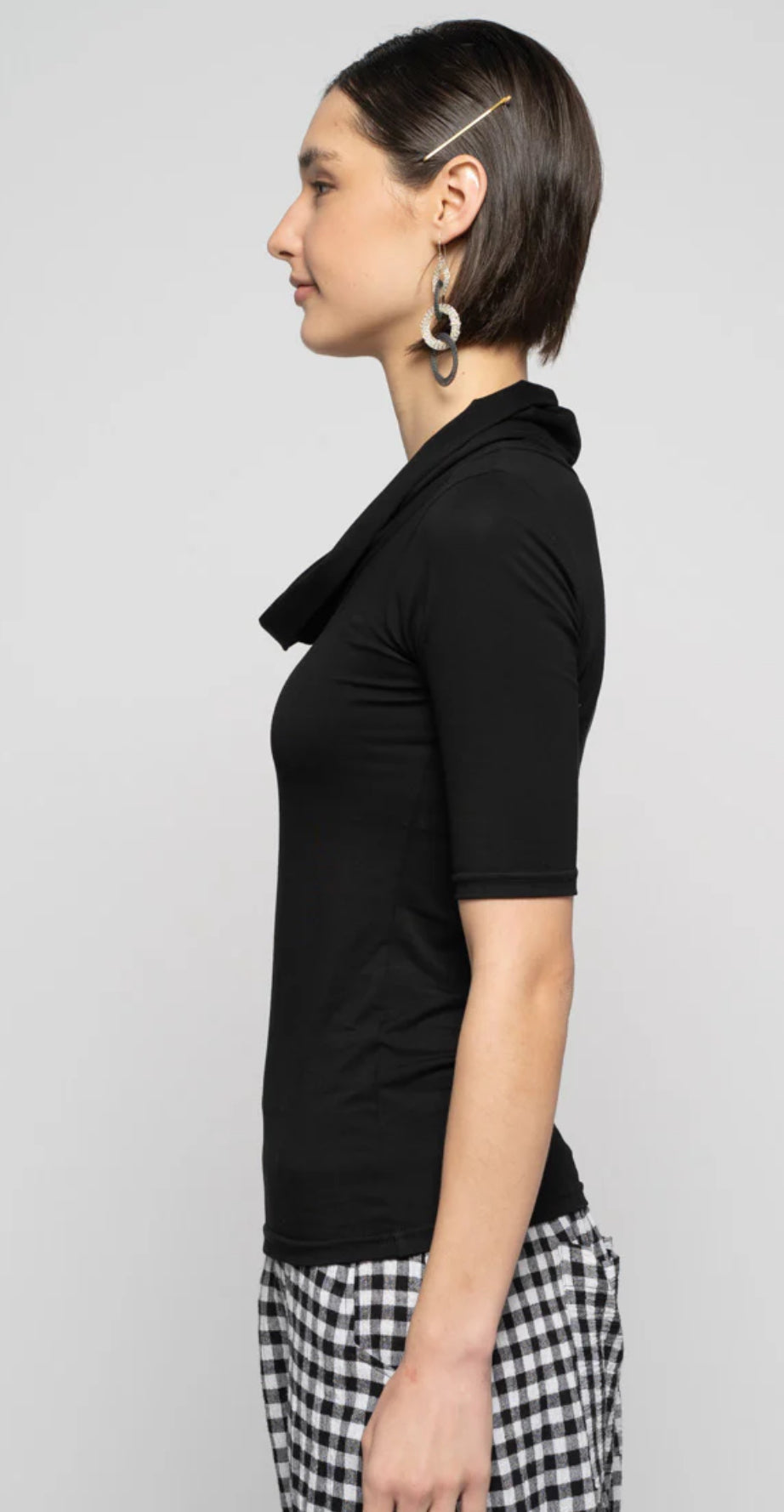 A marriage of fibres in a year-round style, the Miyako Collar Top feels just as beautiful as it looks. The semi-fitted silhouette flows nicely around the body. The cotton-spandex fabric is soft on the skin and breathes well, its fine weight giving a smooth line that's perfect for layering. The collar can twist, sculpt or fold for different looks.