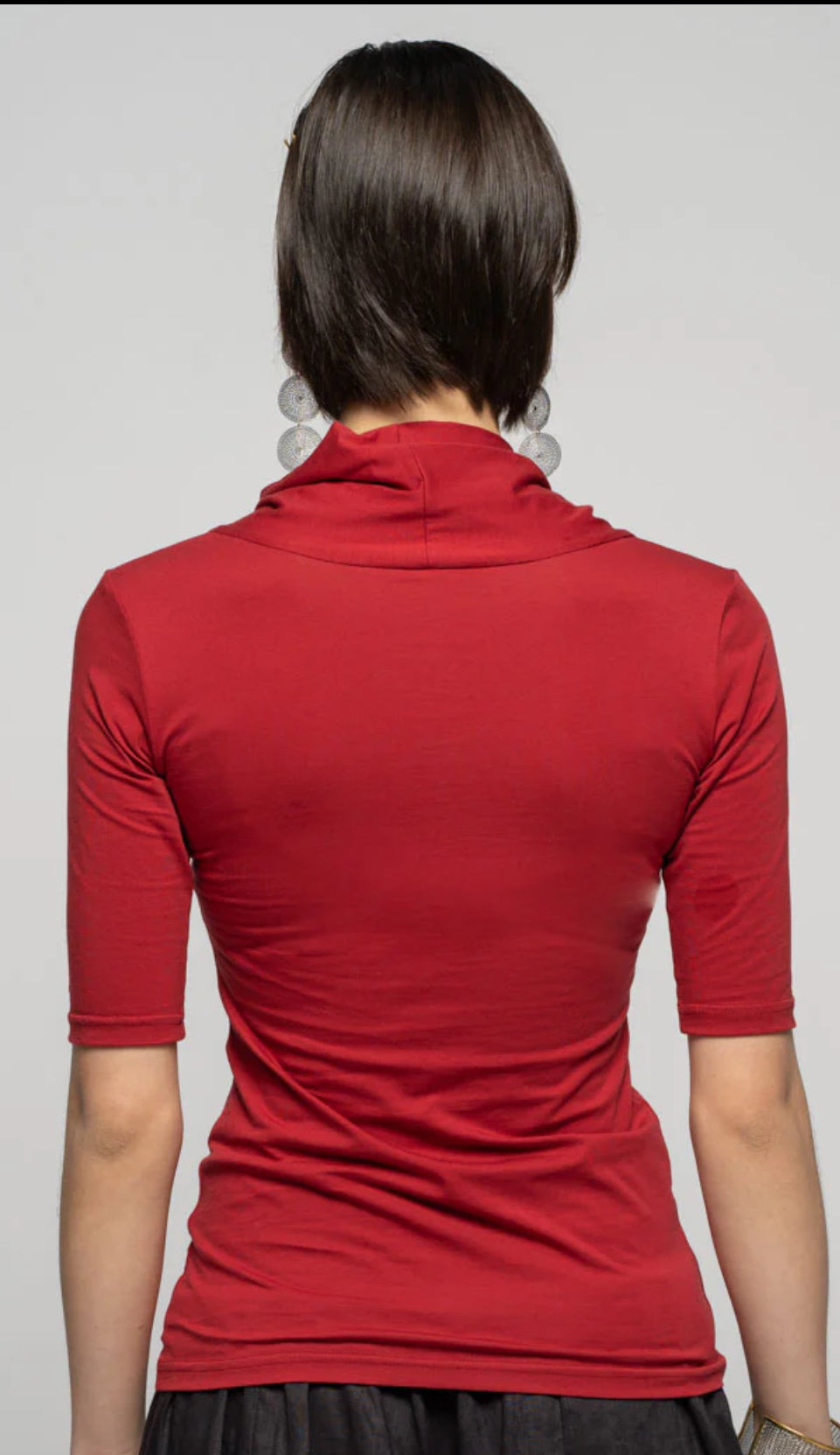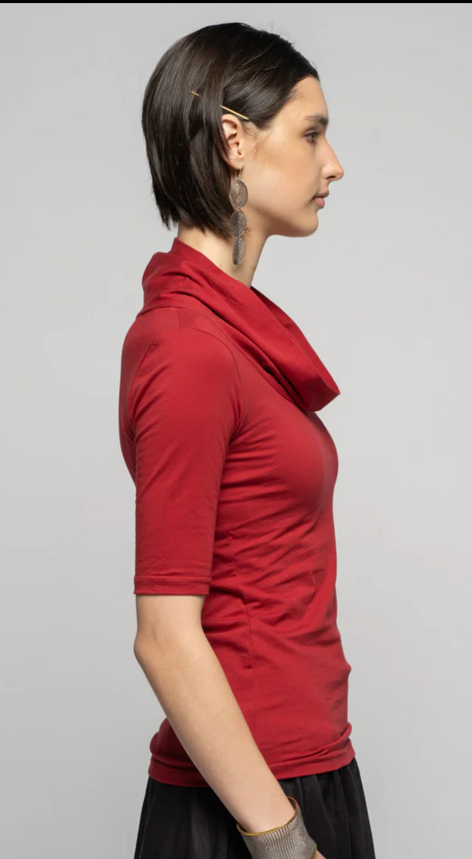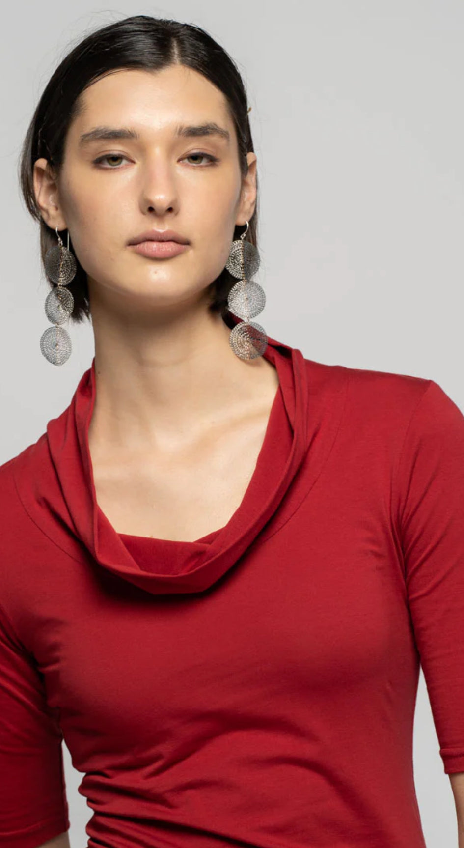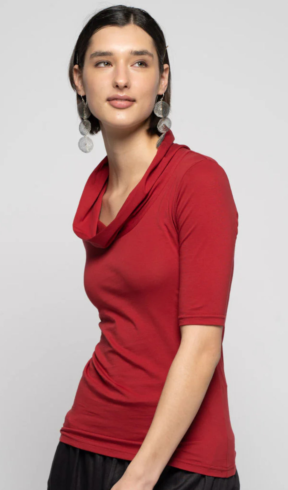 A marriage of fibres in a year-round style, the Miyako Collar Top feels just as beautiful as it looks. The semi-fitted silhouette flows nicely around the body. The cotton-spandex fabric is soft on the skin and breathes well, its fine weight giving a smooth line that's perfect for layering. The collar can twist, sculpt or fold for different looks.