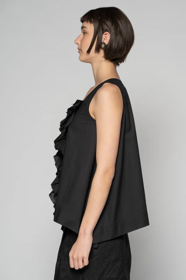 Light as air and rich in texture, the Kiki Frill Top carries a gentle drama — a nod to Elizabethan finery softened through a contemporary dogstar lens. Crafted from 100% cotton voile, its cascading frills fall effortlessly, offering movement and mood without weight.