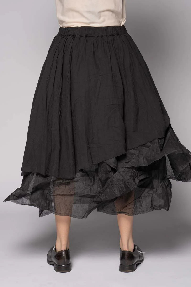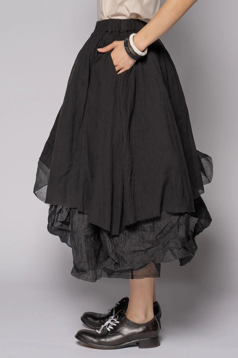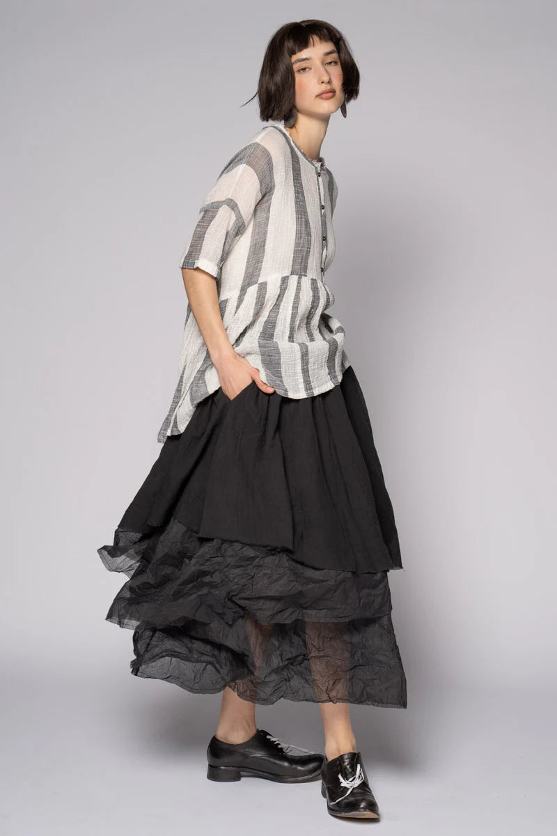 A little theatre for everyday. The Kina Gather Skirtfloats from a softly elasticated waist into an asymmetric sweep of airy layers. Lightweight cotton organdy adds sculptural volume with raw, feathered hems, while a cotton-voile lining keeps it gentle against the skin. Shape it your way—simply scrunch and release the outer layers to build texture and drama. Pair with the Wattle Gather Top for an effortless summer set, or ground it with a simple tee and flats.