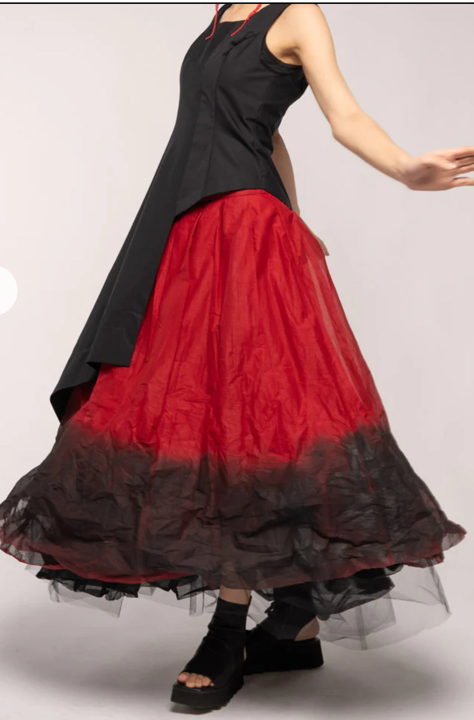 Experience the ultimate drama with the Monarch Skirt. Its fitted waist cascades into layers of hand-painted organdy and voile, complete with a raw hem. Shape and create texture with your own hands as you wear this statement piece, and pair it with the Monarch Top for a sophisticated summer look. Available in Black, White, Navy and Chilli.