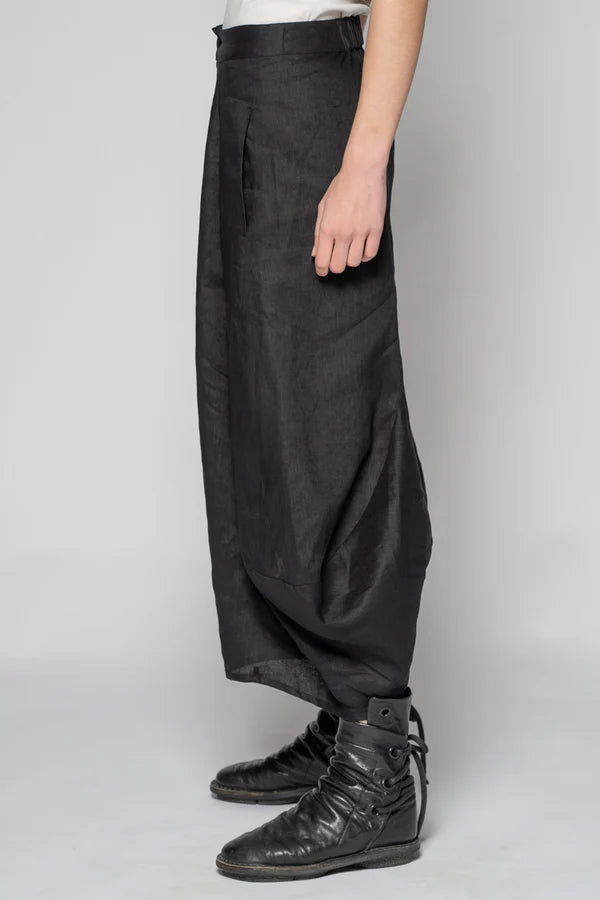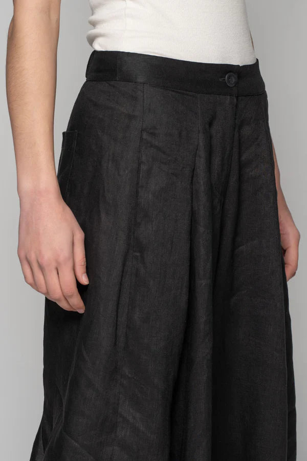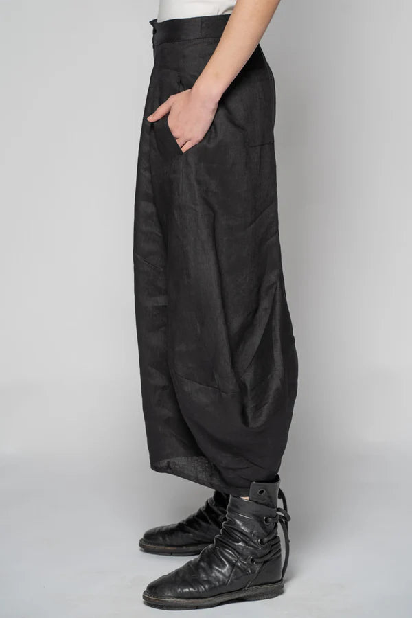 Softly sculpted and summer-light, the Ouna Tie Pants bring ease and quiet shape to warm days. Cut from breathable 100% linen, they skim the waist, fall into generous pleats, then narrow toward the ankle—creating a flattering balance of volume and line. Hidden ties let you lift the hem or deepen the drape, so the silhouette can shift from airy to sculptural. Pair with the fitted Ouna Vest for structure, or the Oki Top for relaxed movement.