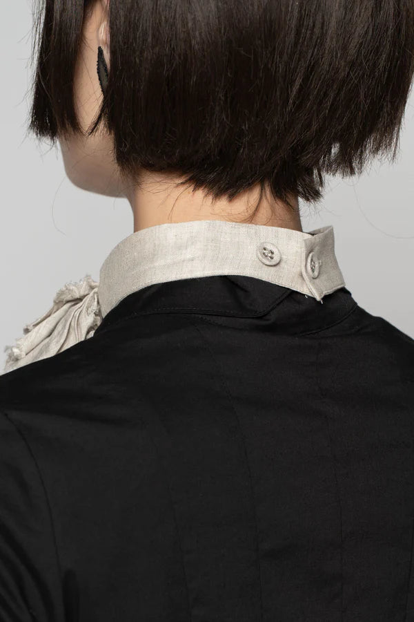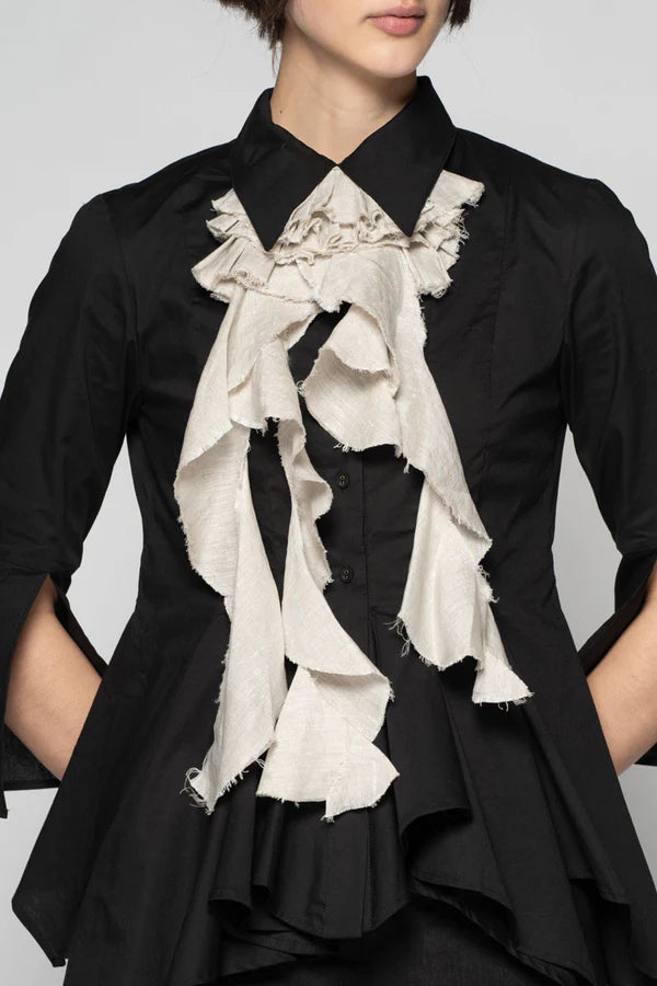 A nod to Elizabethan romance, the Sabi Frill brings quiet drama to modern dressing. Crafted from 100% linen with soft raw edges and layered ruffles, it evokes the elegance of bygone eras — reimagined for today’s wardrobe of texture and expression.
