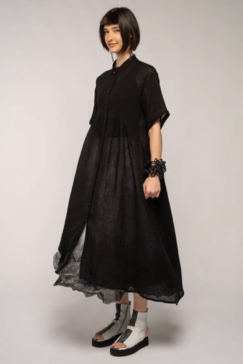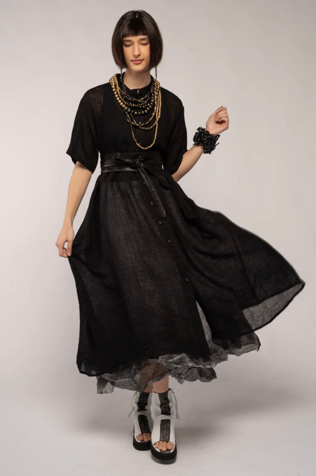 Embrace effortless style and versatility with the Sasa Gather Dress, a trans-seasonal wardrobe essential crafted from 100% crinkle linen. Designed for multi-wear functionality, this piece seamlessly transitions from a sophisticated dress to a stylish long coat. Available in two timeless colors, Black and Chilli, it’s perfect for any occasion or season.