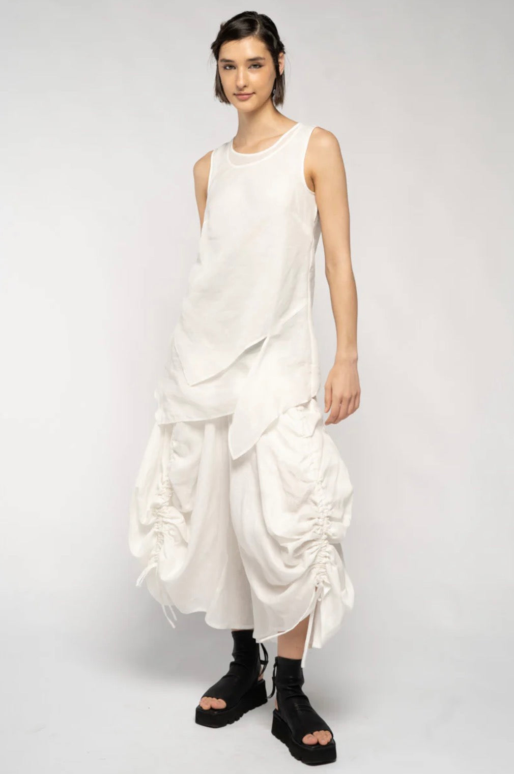Effortlessly styled, embrace the grace of summer in the Yuri Tunic. Crafted from 100% ramie, this tunic boasts a weightless feel, caressing your body with breathable comfort. The complimentary lines cascade into an asymmetrical hem, creating a lightweight layered silhouette without the bulkiness. Style together with Ami Low Pants and Ami Short Jacket for a comfortable yet stylish ensemble.