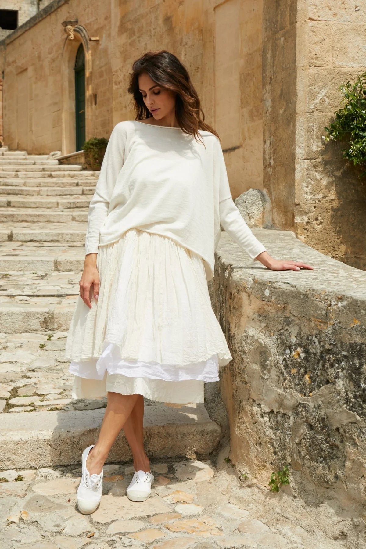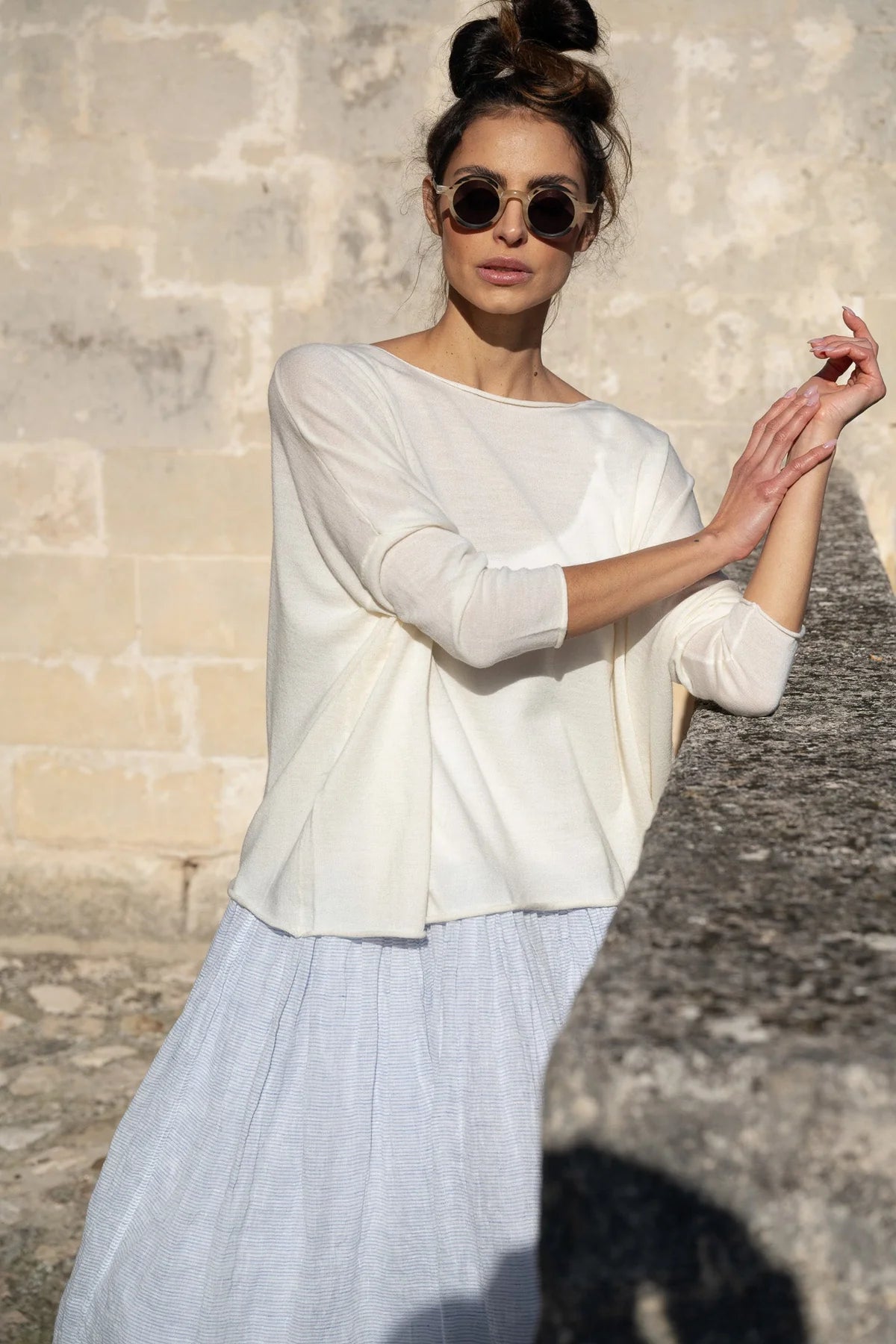 Our Emi jumper is made from a soft 100% merino wool and has been designed to perfectly layer over many of our other pieces. The lightweight fabric creates a beautiful flattering drape and the drop shoulder sleeve is incredibly flattering.