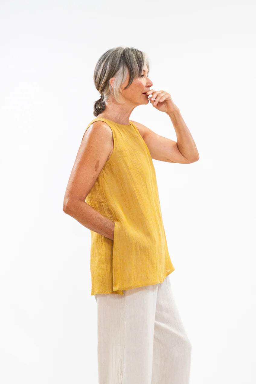 The Asher Top is beautiful worn on its own as a simple sleeveless top. It also makes a perfect layer when worn under a jacket, dress or open shirt.