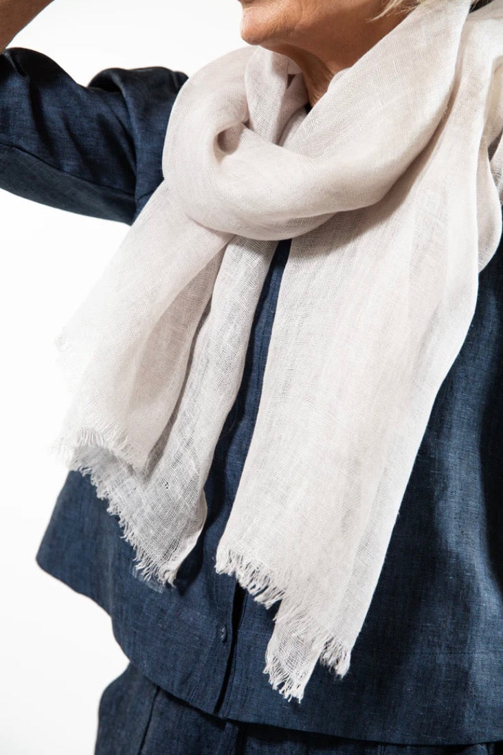 This linen gauze scarf range is the perfect way to add a pop of colour to your look. They are as light as a feather but generous in size and come in a wide variety of colours. Wear your scarf around the neck, tied as a head scarf, or wrapped around the shoulders. They are the perfect transseasonal wardrobe addition.