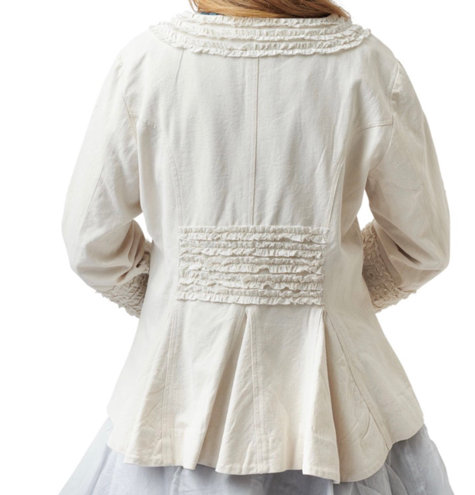 Lovely cotton jacket/jacket by Ewa i Walla. Really beautiful embroideries, gorgeous mini frills on sleeves, neckline and back, fastening with antique clasps, very feminine pattern. It fits perfectly with Ewa's dresses and skirts, but it's also great with jeans, for example. This jacket is perfect!