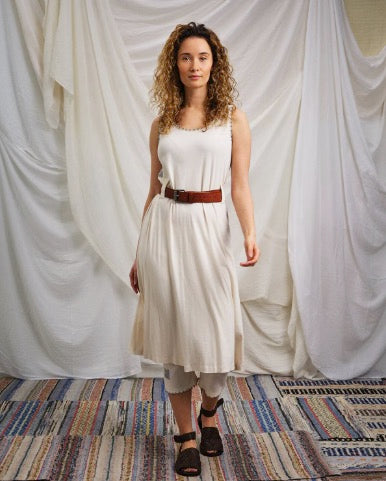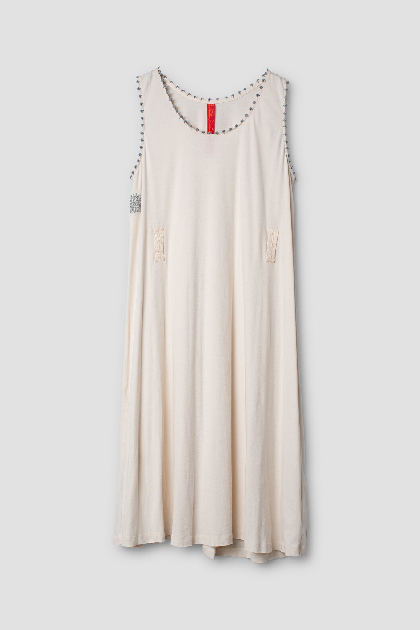 Superb dress in rib cotton jersey, sleeveless, with patches and belt loops made of late.
