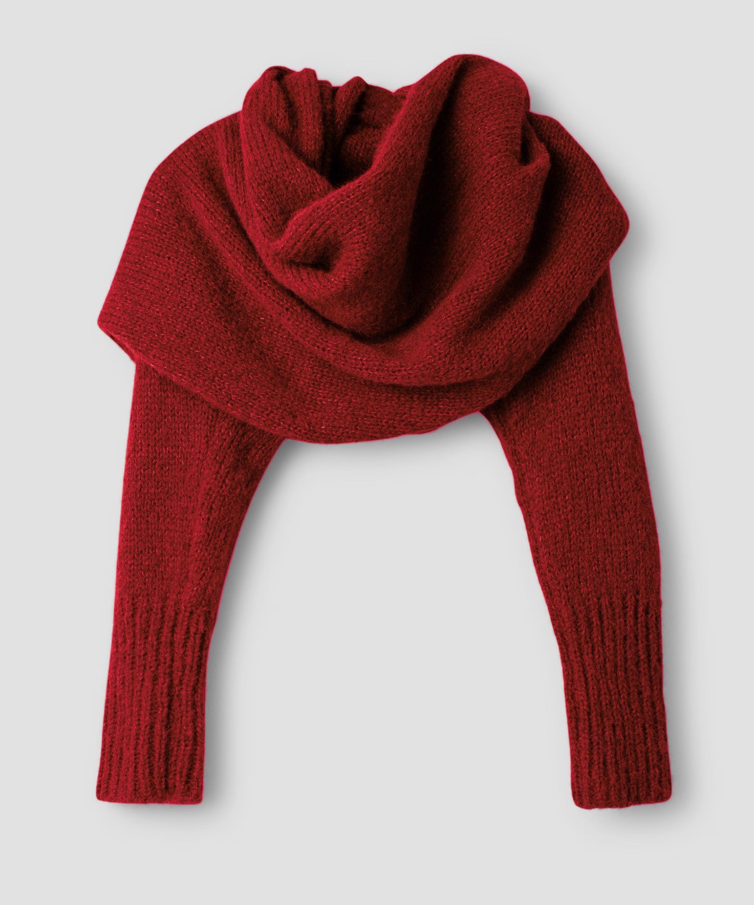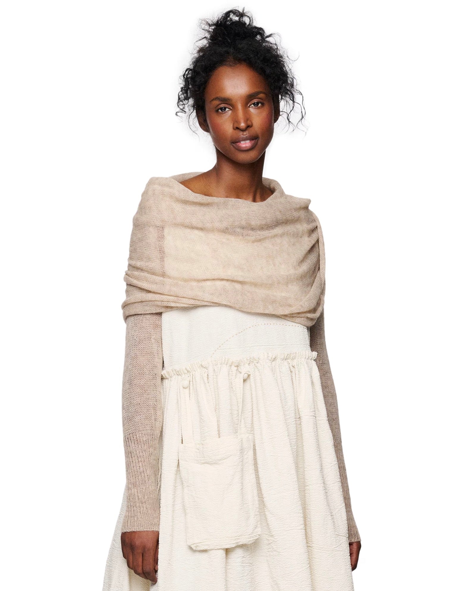 Ewa i Walla Bessie Shawl Knitted shawl with sleeves in soft alpaca. Please note that the garment may dry bleed when in contact with light-colored materials.