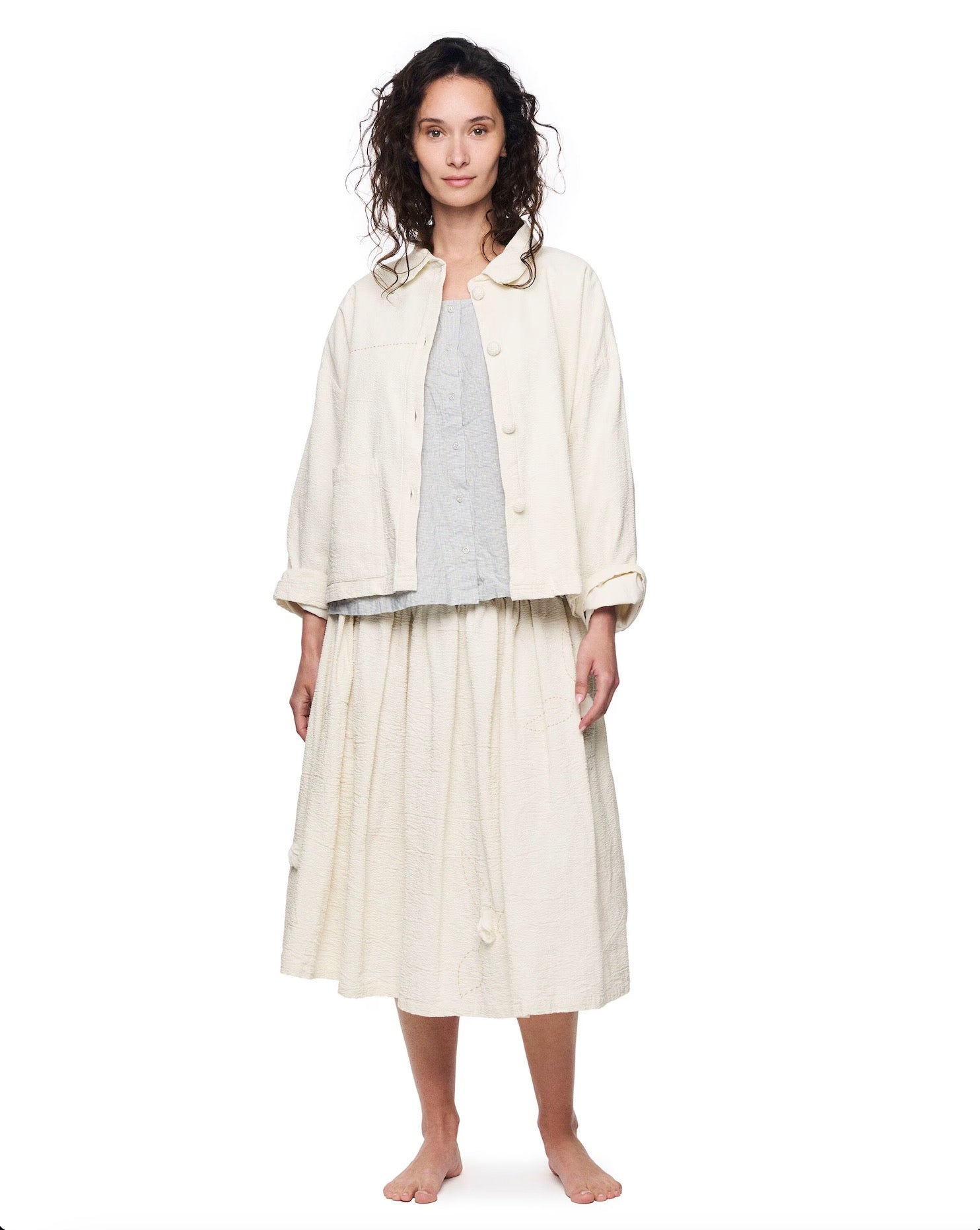 Ewa i Walla Cotton Skirt with Flowers Katrina 22264 Cream