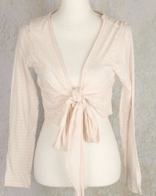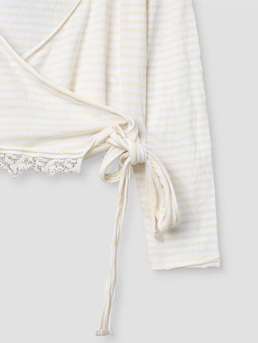 Long-sleeved wrap around tee Sabina in striped jersey with tie ribbon and lace.