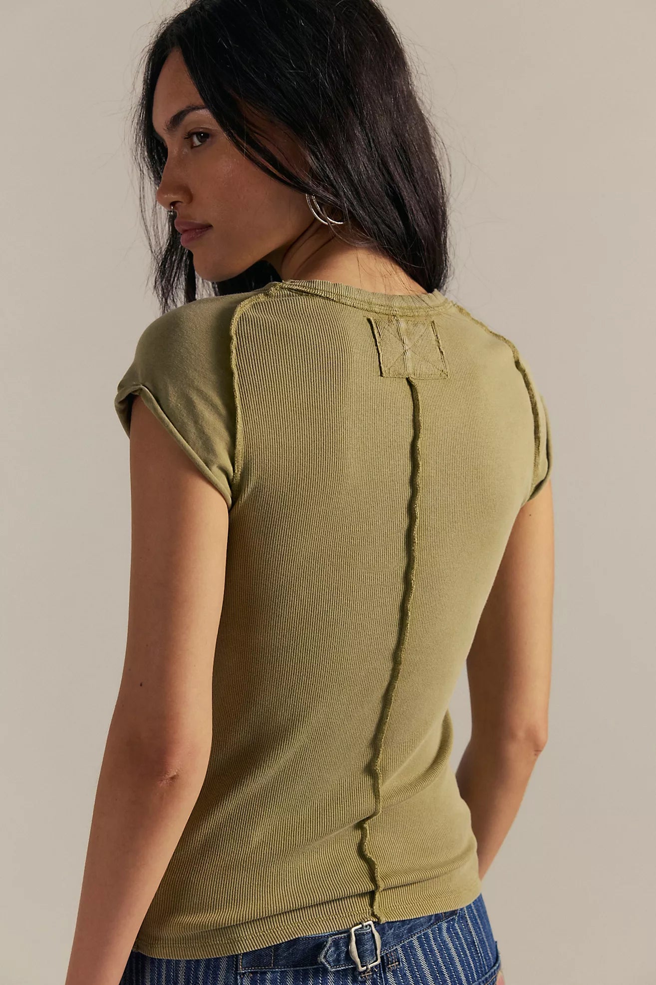Your new favorite timeless tee from our We The Free collection, featured in a soft, ribbed knit fabrication and slim-fitting silhouette with raised seam detailing and cap-inspired sleeves.