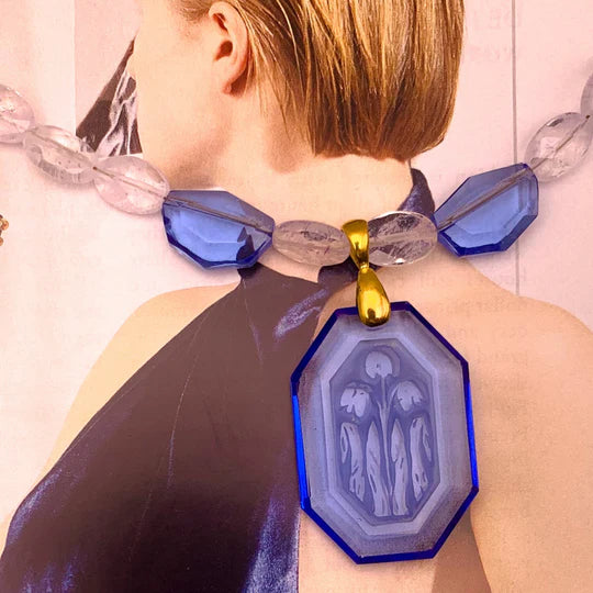 Hung on a beautiful, beaded Necklace with Rock Crystal Gemstones and Art Nouveau Cut Crystal Beads