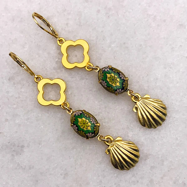 Rare Vintage Mosaic Cameos made in Germany in the 1950’s. Adorned with wonderful Gold Filled Shells and 4 Leaf Clover.