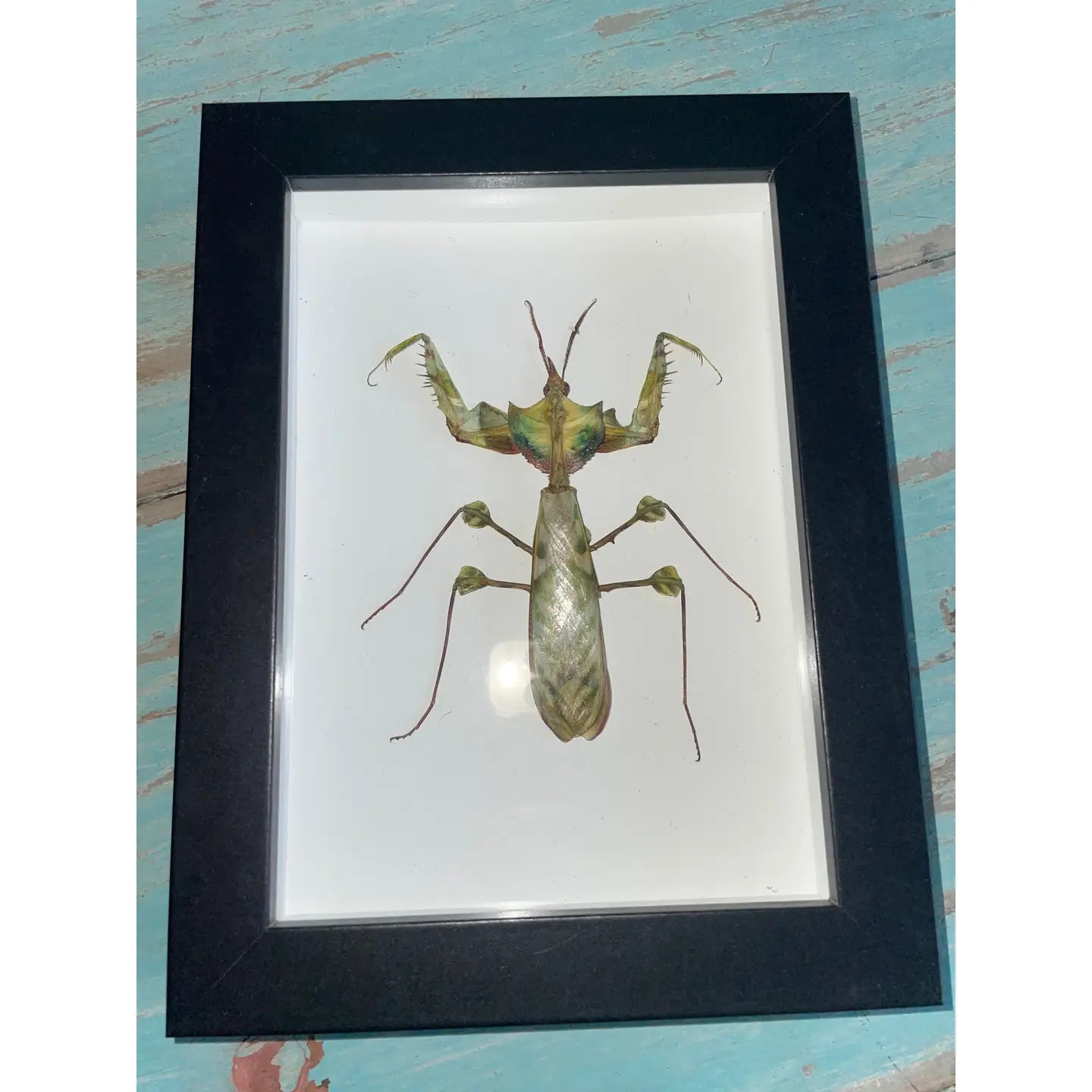 Species Name: Idolomantis diabolica Common Name: Giant Devil's Flower Mantis Origin: Tanzania Size: 5 x 7" Black Shadow Box Frame These look like they could scare any creature to death.