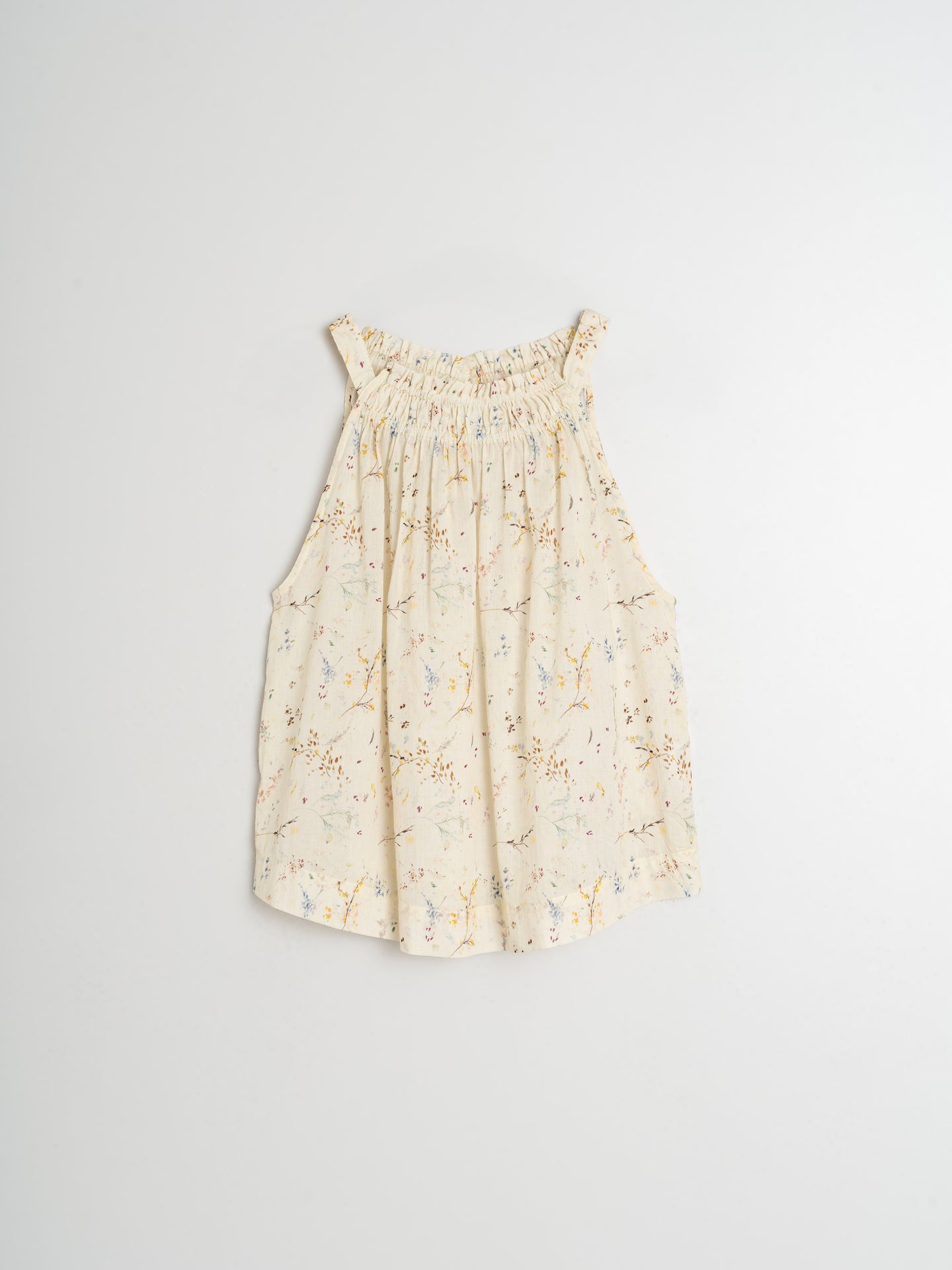 Add a romantic touch to your closet with this halter top. The gathered design with back tie closure is modern and feminine. The cotton voile fabric, with its floral print inspired by paper made from flowers, makes this garment special and in tune with INDI&COLD DNA. The relaxed fit ensures a comfortable fit.