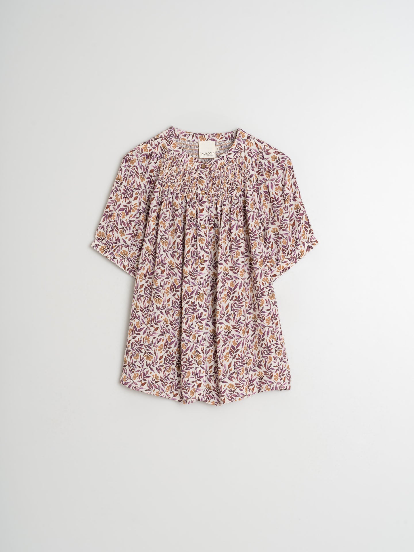 • Texturized fabric with sustainable viscose featuring a digital watercolor floral print.