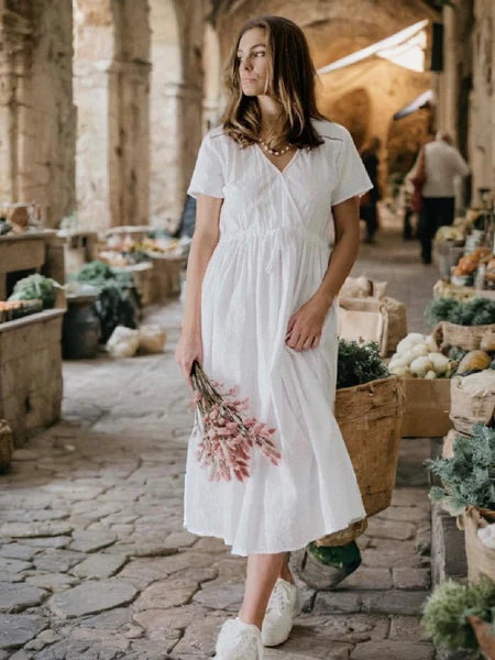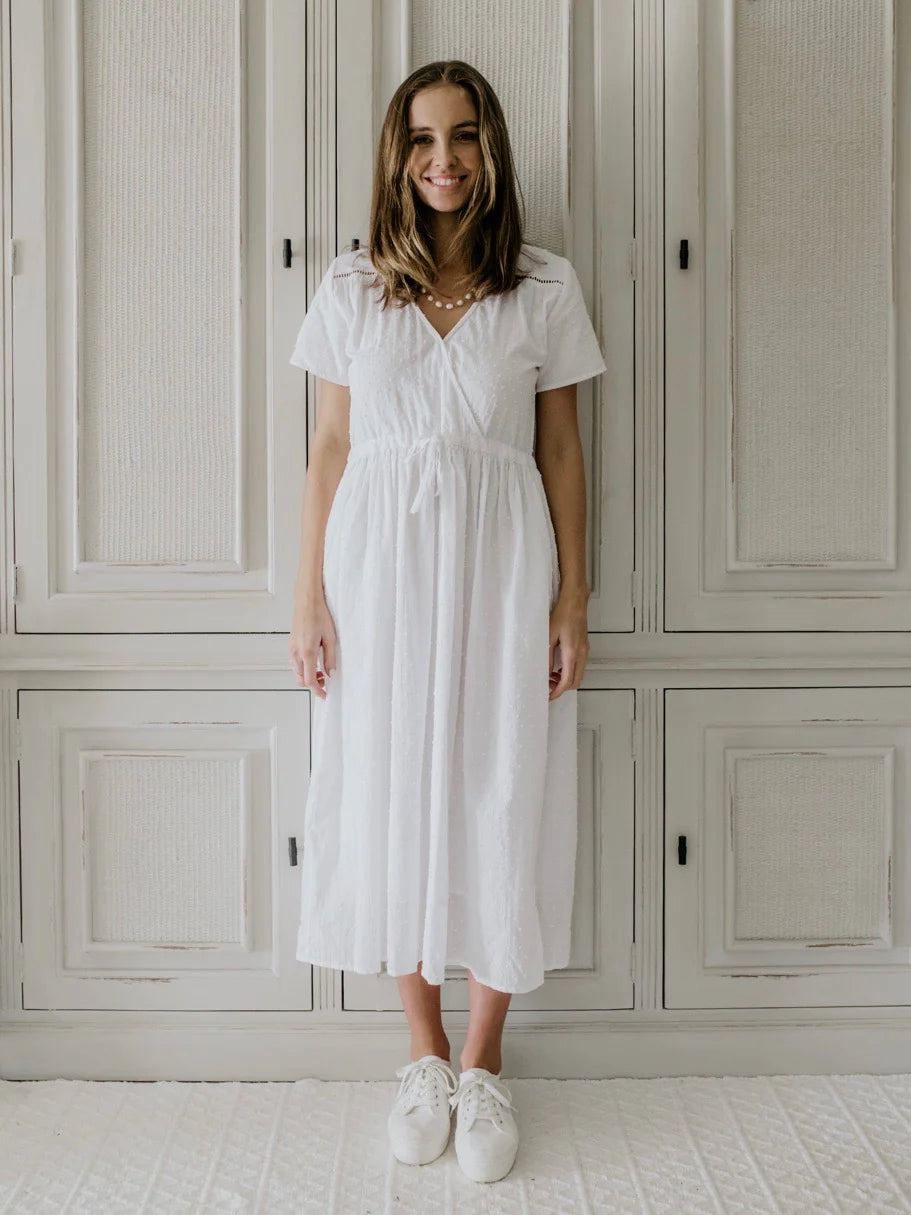 The Ava Dress is finally here for a very early start to Spring.. Its the prettiest white every day dress you will find. It has pockets and a built it slip so not see through at all. Draw string waist makes is an easy fit.