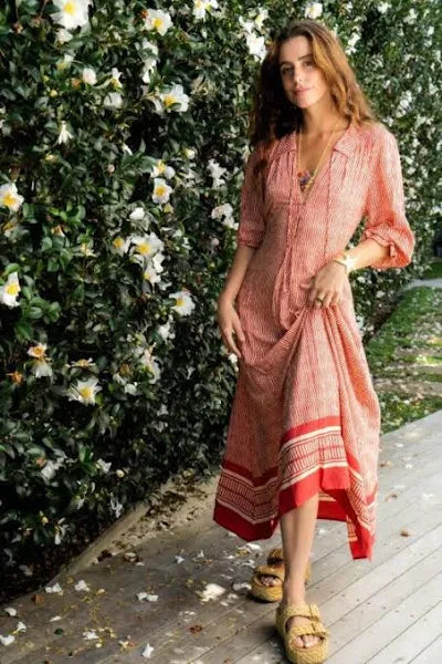 The Helene Midi Dress by Ladli. Made from lightweight and breathable winter weight cotton voile . Tie it at the back or at the front.