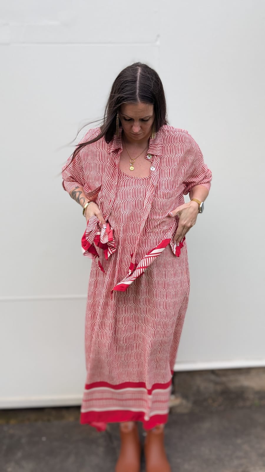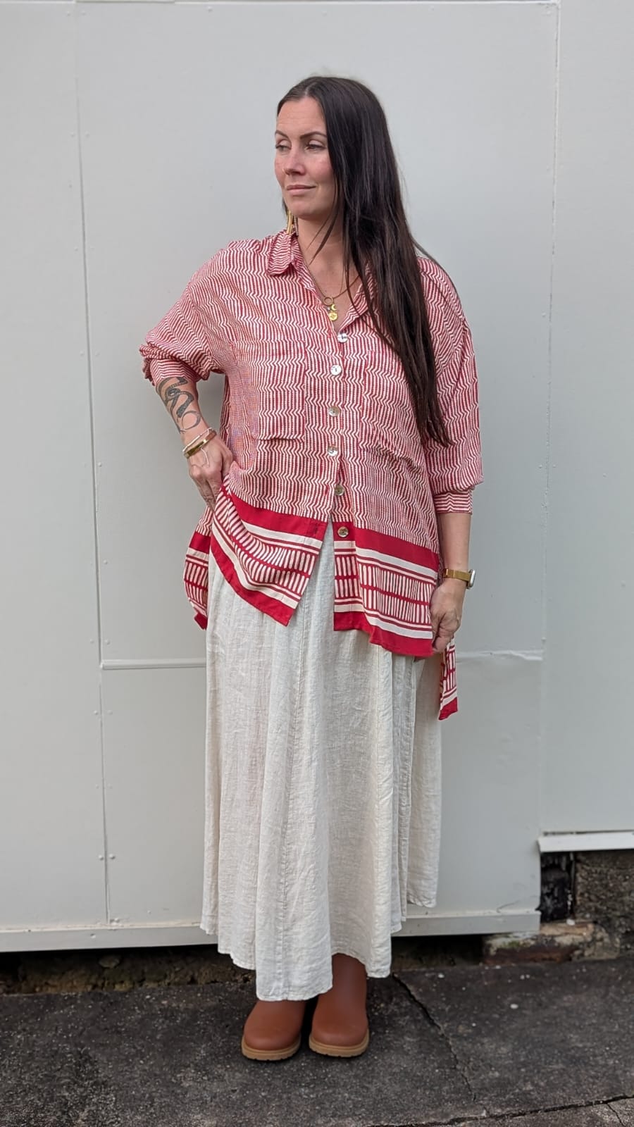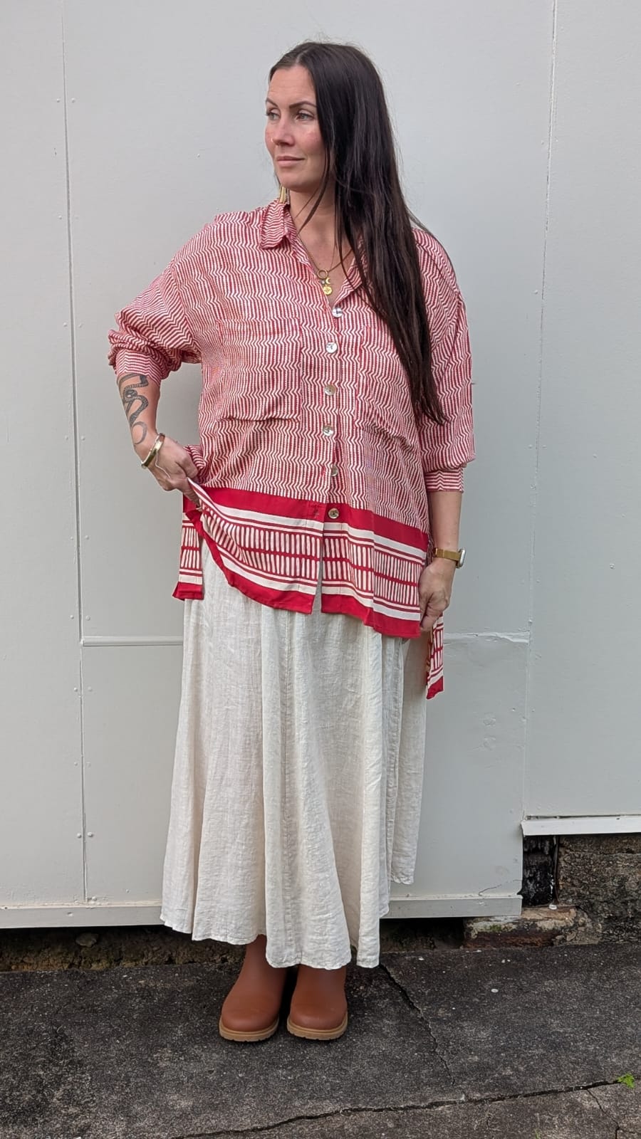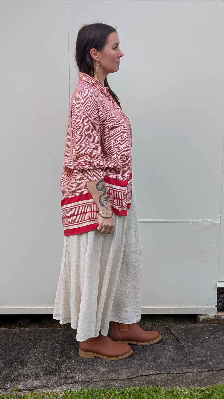 Red and white colourway: Linen/Bark Fibre and coconut shell buttons