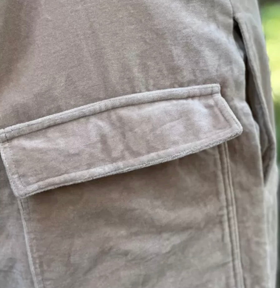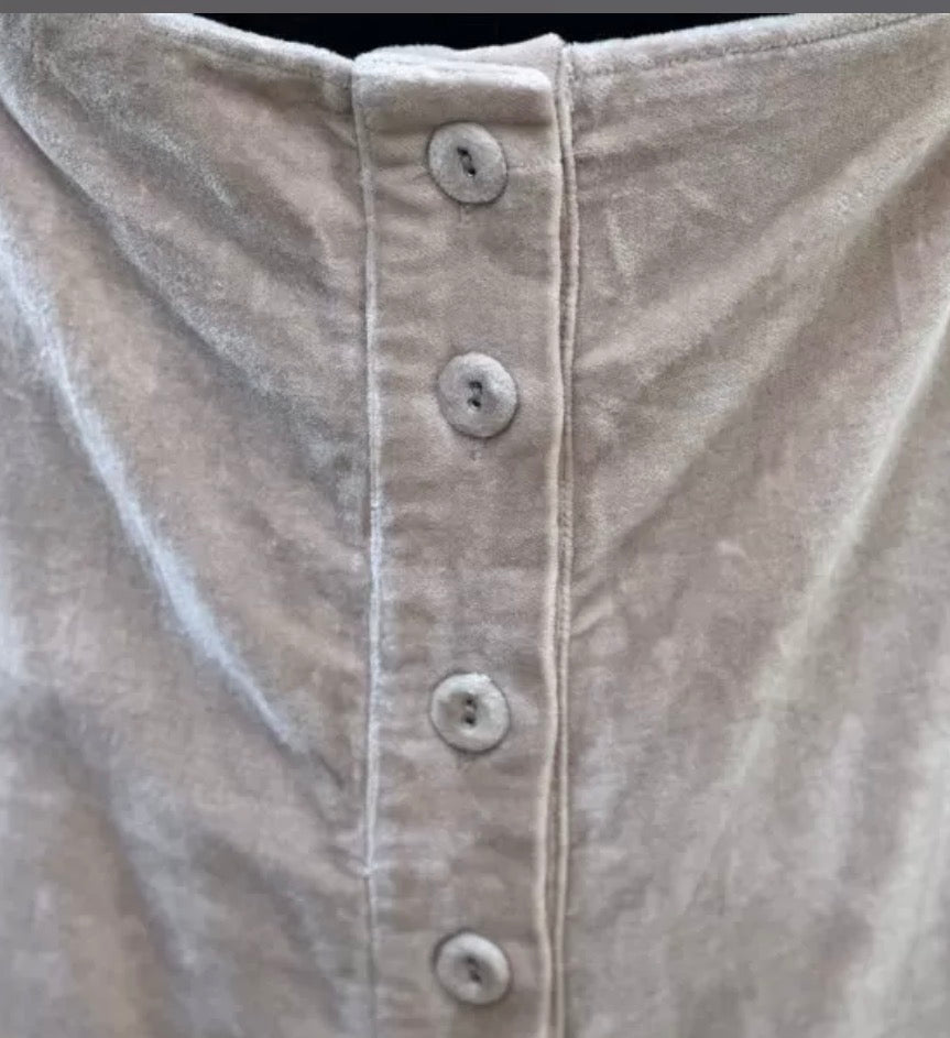 Adorable pink velvet overalls with adjustable straps using a button fully lined with plain cotton voile and buttons down the front, it has two hidden pockets at the side and a large pocket on the front and one on the back