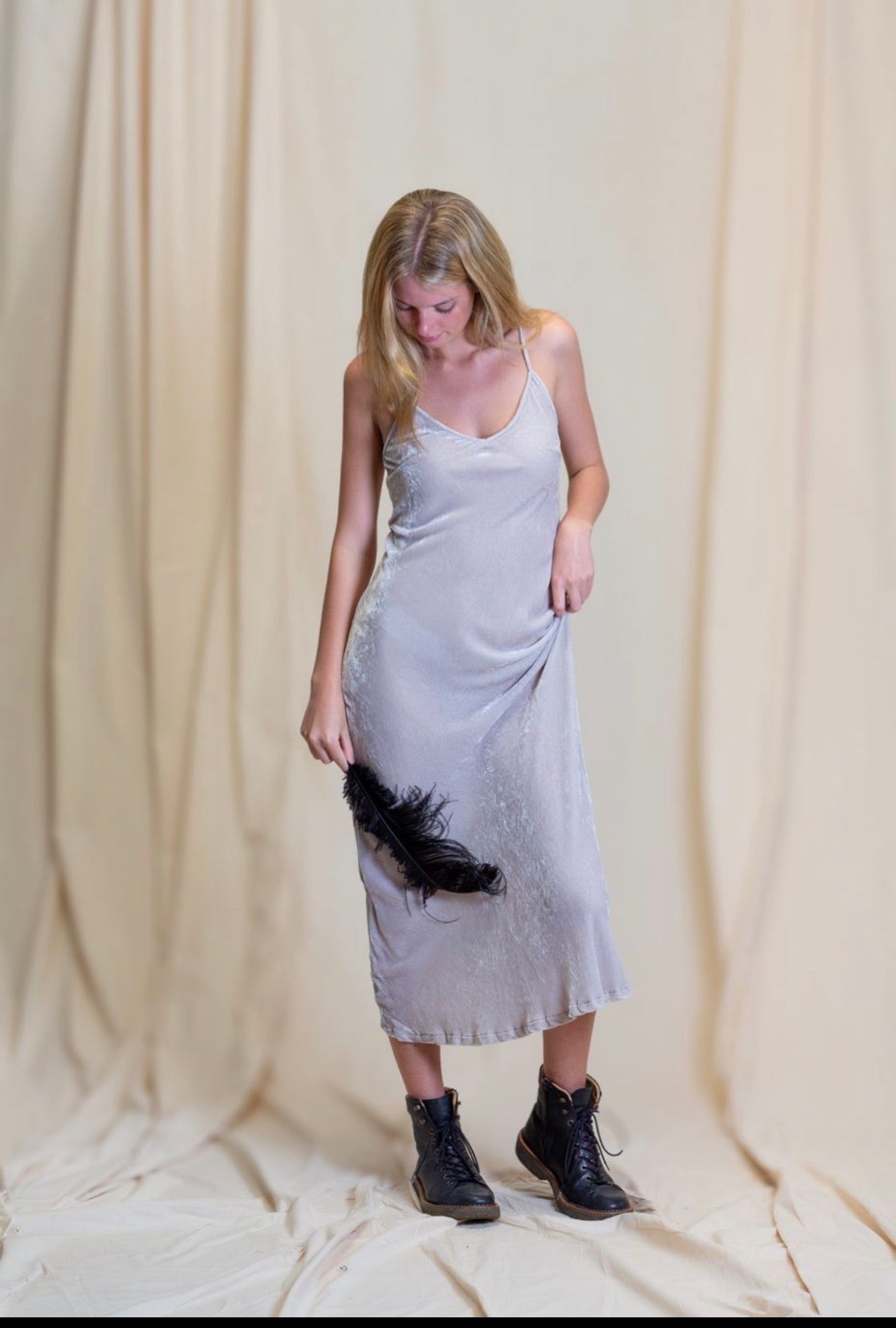 Long velvet slip dress stone otomo