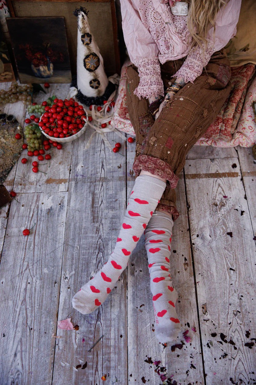 Magnolia Pearl Candy Heart OTK Socks 083-AMRES-OS