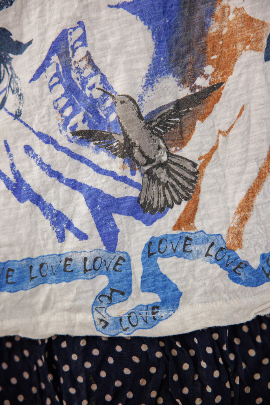 - Hand-Distressing (Small Holes) at Shoulders, Neckline & Hems