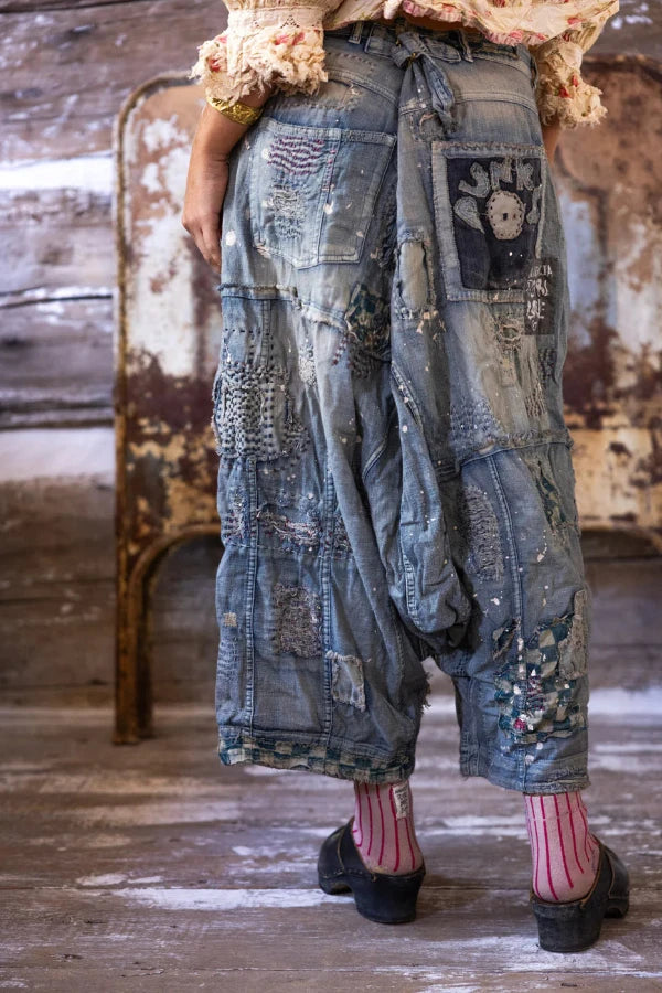 - Heavy Hand-Fading, Distressing, Patching, Mending & Stitching