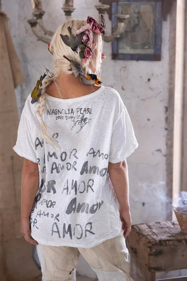 - Hand-Lettered, Repeating “Amor” Graphic Print on Back