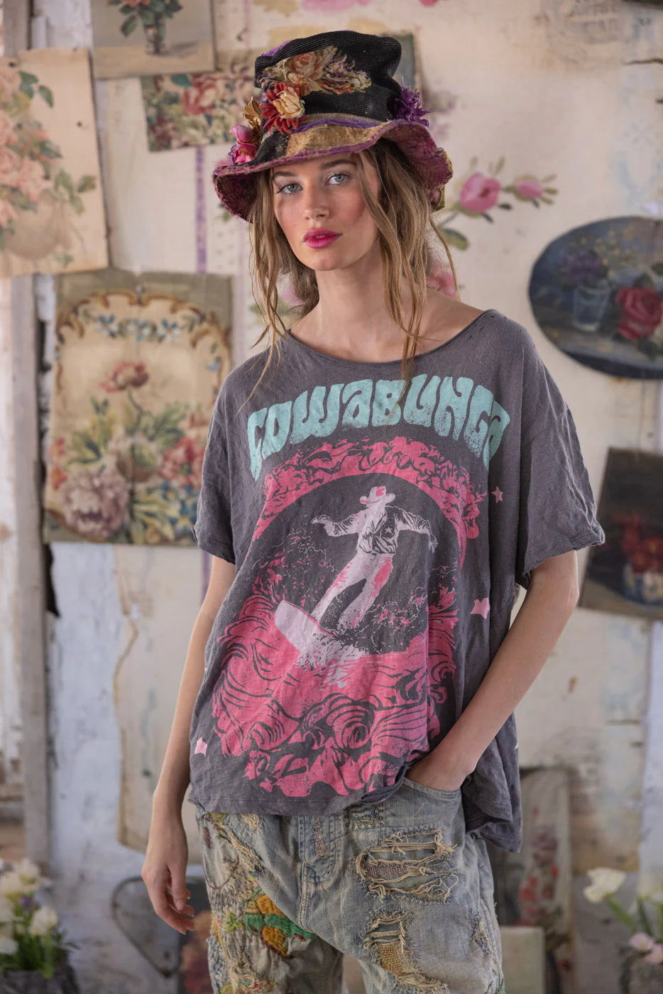 - Surfing Cowboy with Stars and "Cowabunga" Wording on Front
