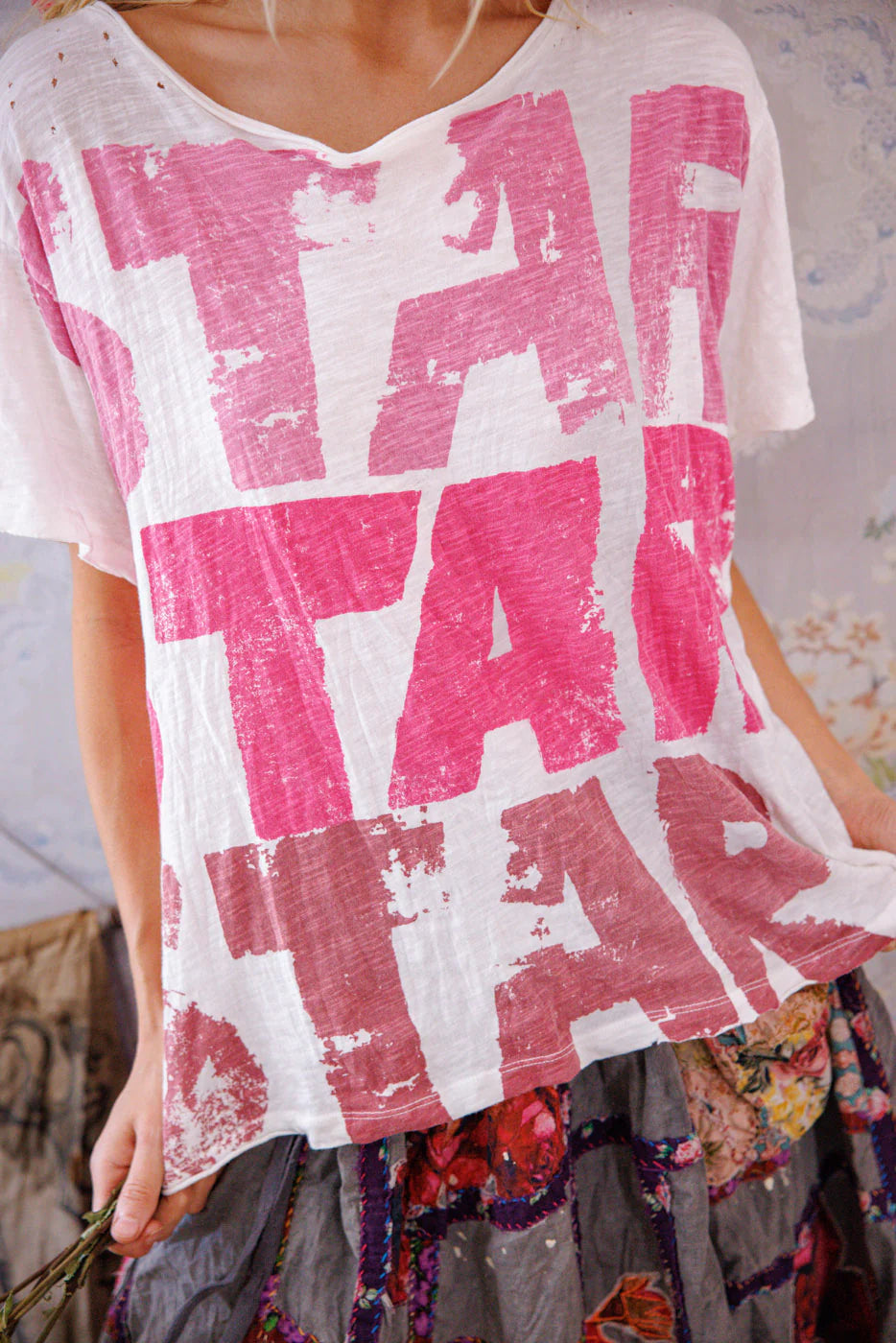 - Hand-Distressing (Small Holes) at Neckline, Shoulders & Hems