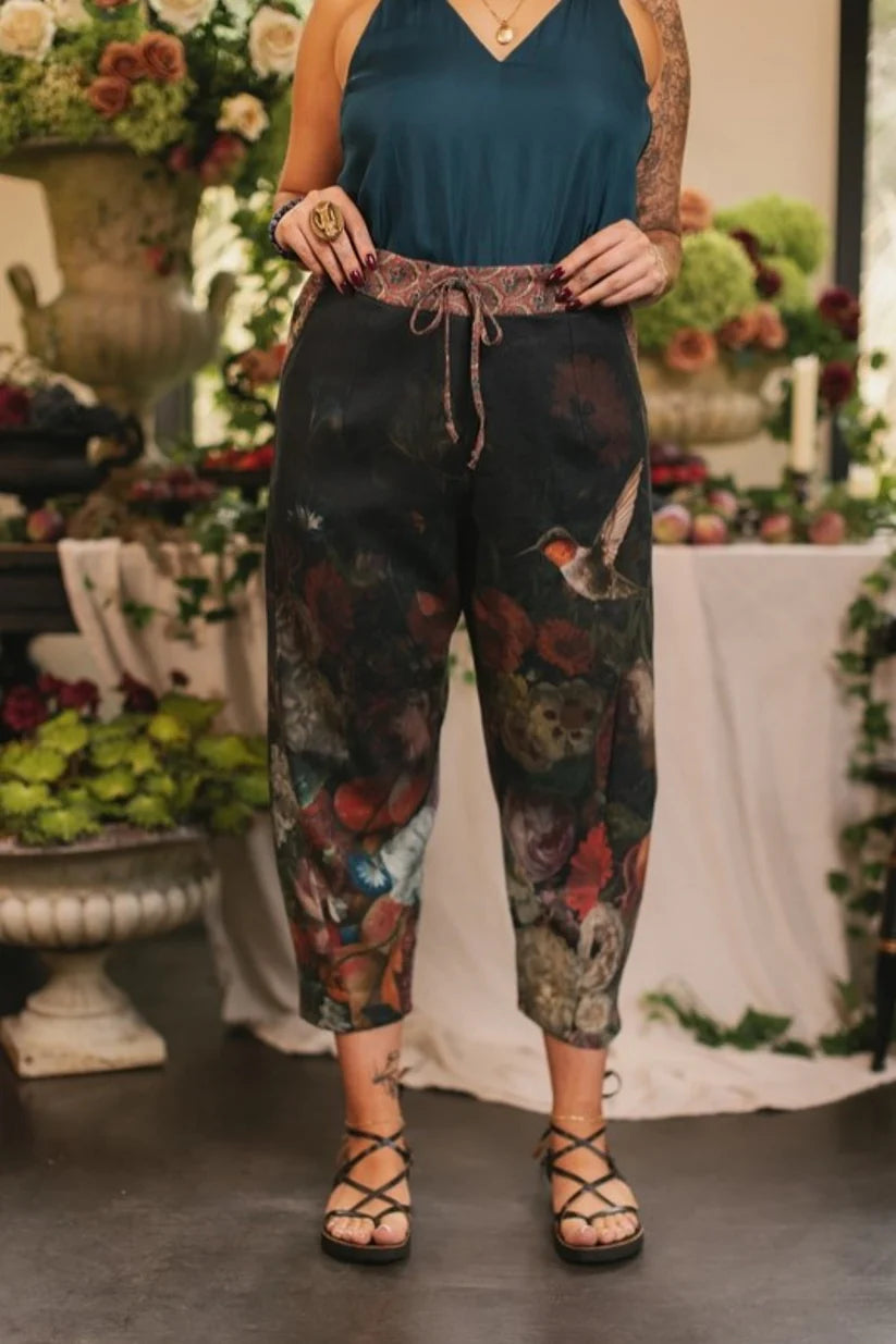 These highly anticipated Artist Pants are made from a natural blend of linen and viscose & feature a drawstring front, elastic waist back panel, pockets, cropped length, and a flattering lantern hem design. The custom-woven fabric is easy to care for and so comfy.