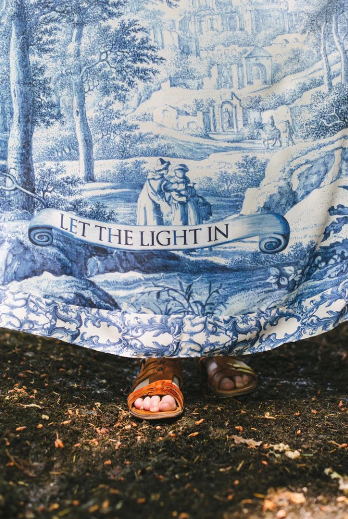Inspired by poet Leonard Cohen’s famous quote “There is a crack in everything, that's how the light gets in”, this design celebrates the ways our experiences shape us, and the perfect beauty of imperfection. Created using pieces of Delft tile from the 1700’s — including two Italianate landscape scenes — we chose to leave in the cracks and slight imperfections from the original ceramic in our final print. The trim comes from an 1867 British book on classical ornamentation, and an earthenware plaque from the Netherlands painted in 1780.