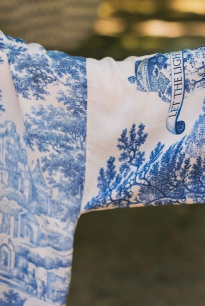 When we unearthed an antique seed catalogue with the delightful image of an artist’s paint palette dotted with flowers (instead of paint), we were instantly inspired to create this piece! One of the most intricate prints we’ve ever designed, it was made by carefully remixing the original artwork, and layering over 50 different flowers together to create the background. Every single beautiful little flower was taken from vintage 1800’s seed catalogues. The banner on the trim is a lithograph from the same era, and features a quote from the great artist, Claude Monet — who once said he owed becoming a painter to the beauty of flowers. The resulting print is whimsical, artsy, and super cool — with an antique feel that we adore.