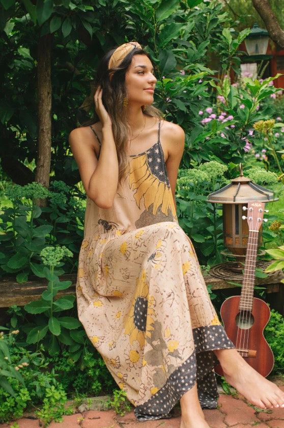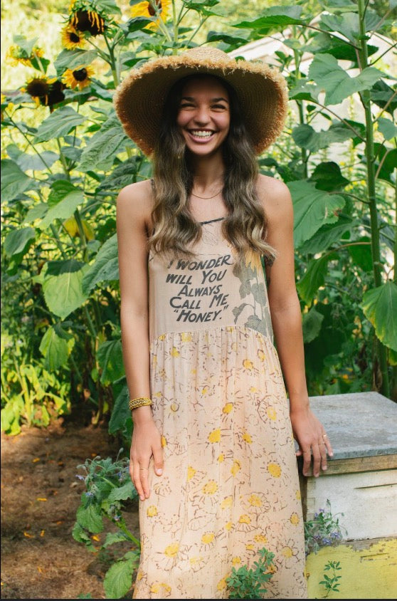 Market of Stars unearthed a whimsical & cheeky 1904 poster from Brooklyn, NY, advertising a musical number called “I Wonder Will You Always Call Me Honey”, we were so charmed! Using the nostalgic graphics, along with woodcut stars and flowers drawn the same year by artist Theo Hoytema, we created our playful Milk & Honey print. The adjustable straps, oversized cut, and soft, flowy bamboo viscose make it a wardrobe staple for layering, running errands, dancing, lounging or napping — and it’s a must-have for travel, wherever you roam.