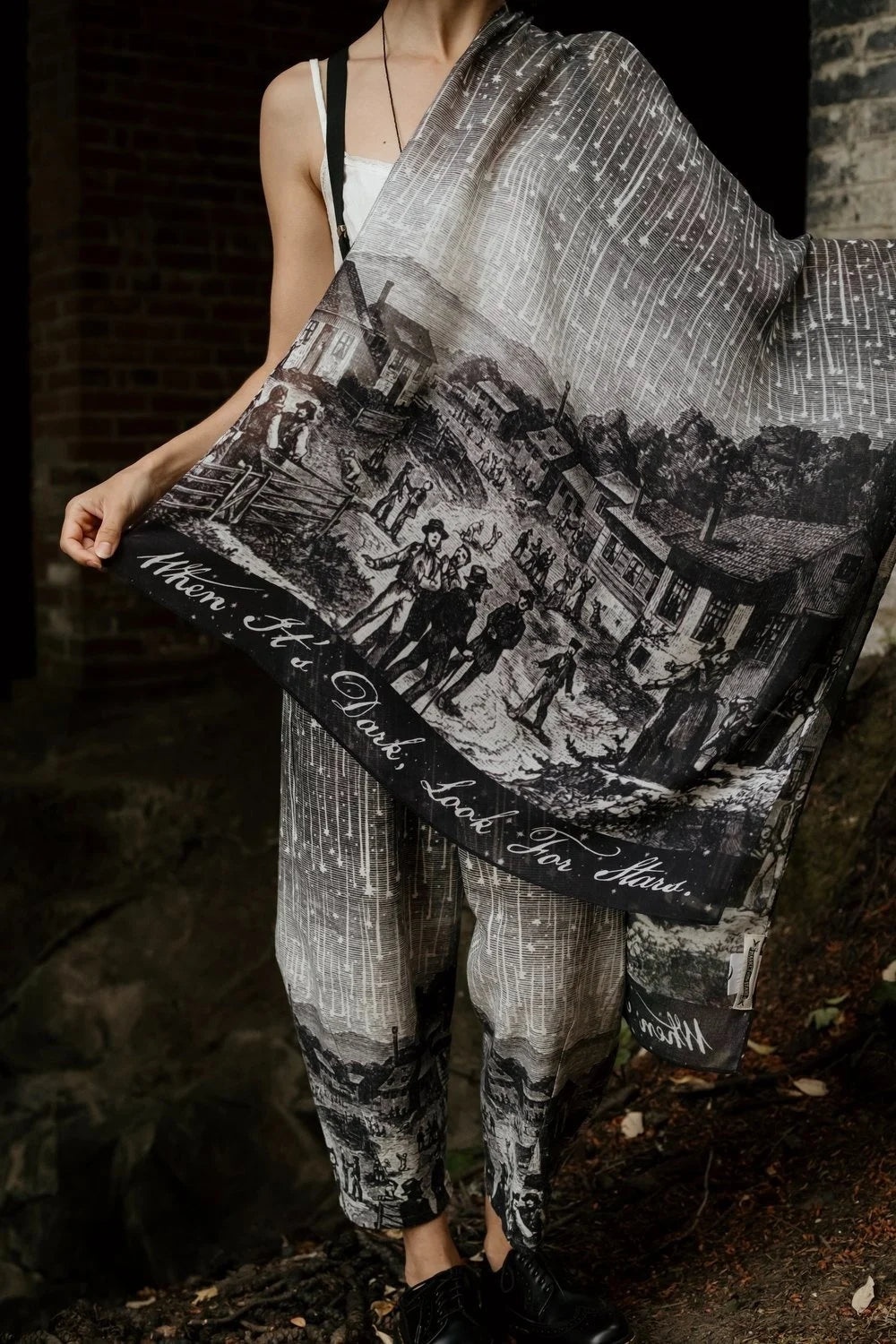 We are full of wonder and made of stardust and so is this marvelous piece! Created using an 1833 engraving by artist Vollmy, the Stargazer print features a night sky filled with thousands of shooting stars.