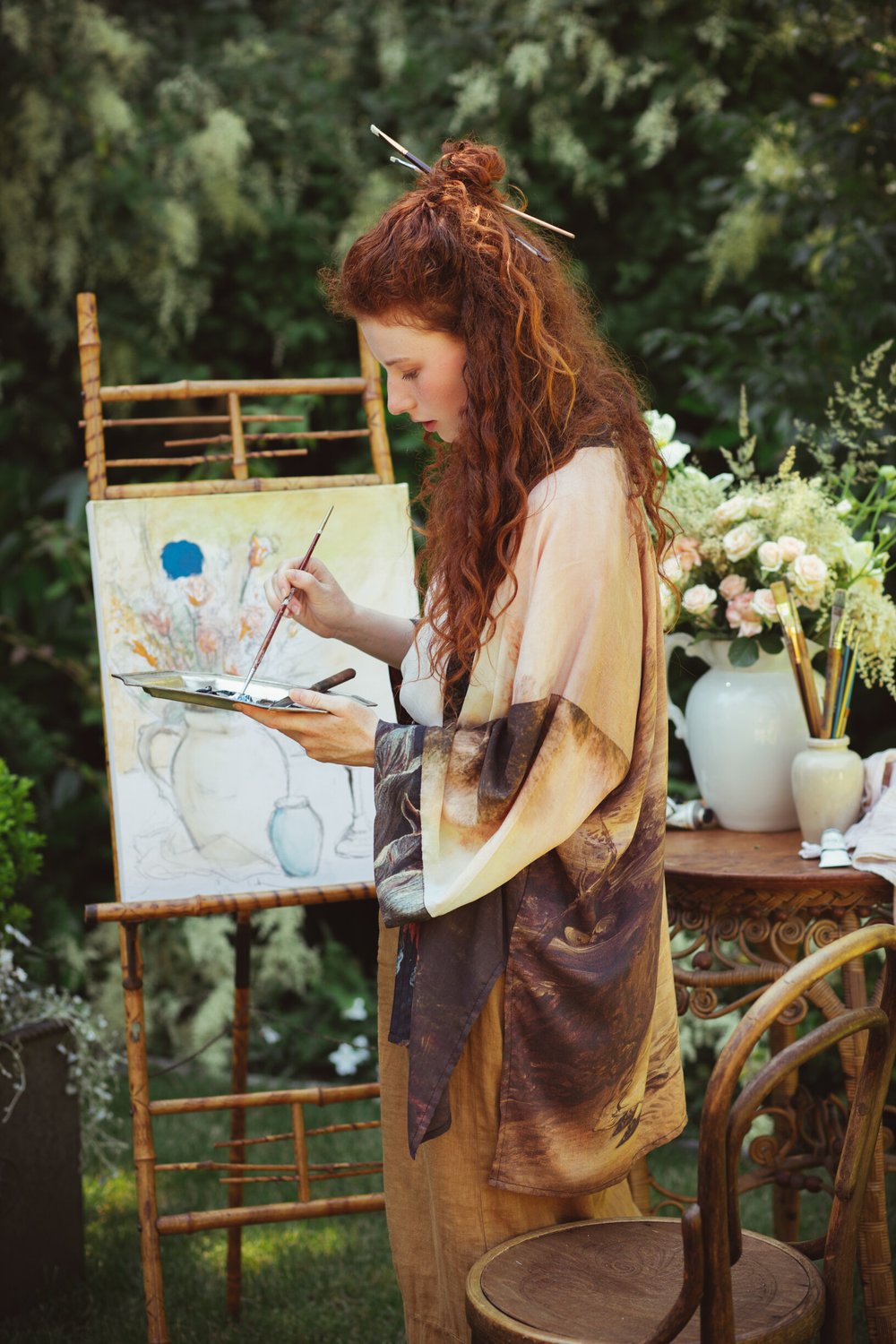 We celebrate artists — the ones who break themselves open over and over so they can share their vision with the world. This dreamy, painterly kimono was created by layering works of art from the 1700s— including two painting studies by artist Thomas Gainsborough, and a floral painted wooden frame from the same era by an unknown artist. It’s a piece that feels at once modern and timeless, and utterly unique — just like you.